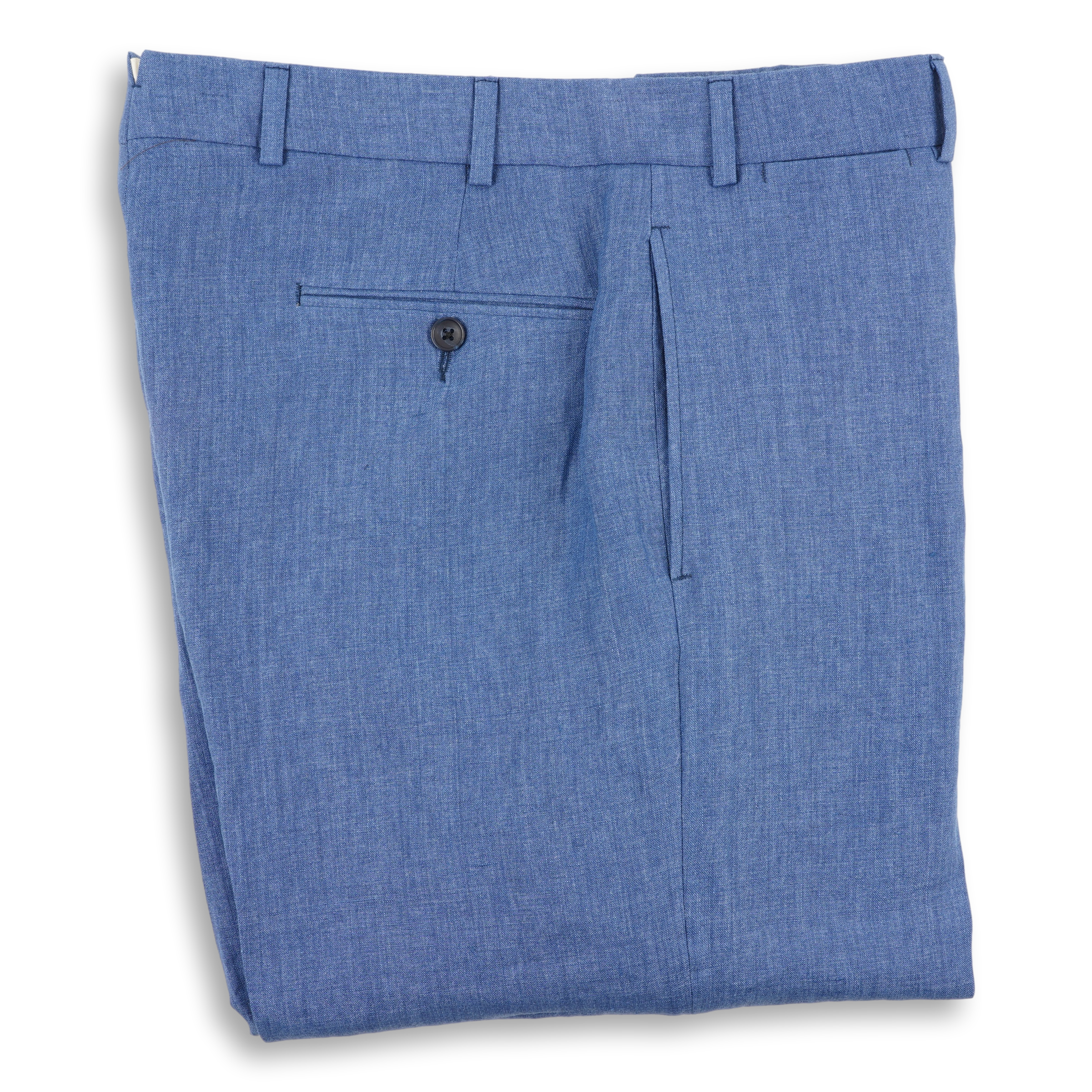 Washed Denim Blue Plain Front Linen Trousers