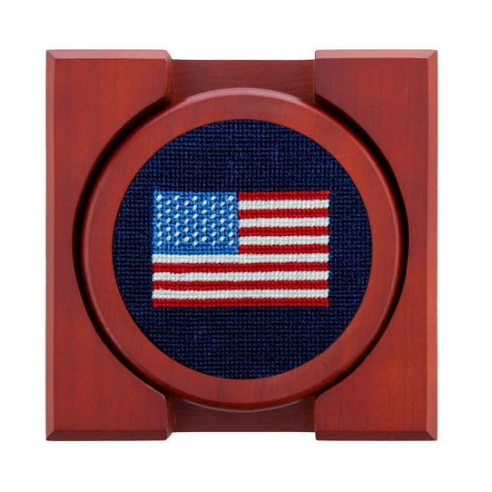 American Flag Needlepoint Coasters (Set of 4 with holder)