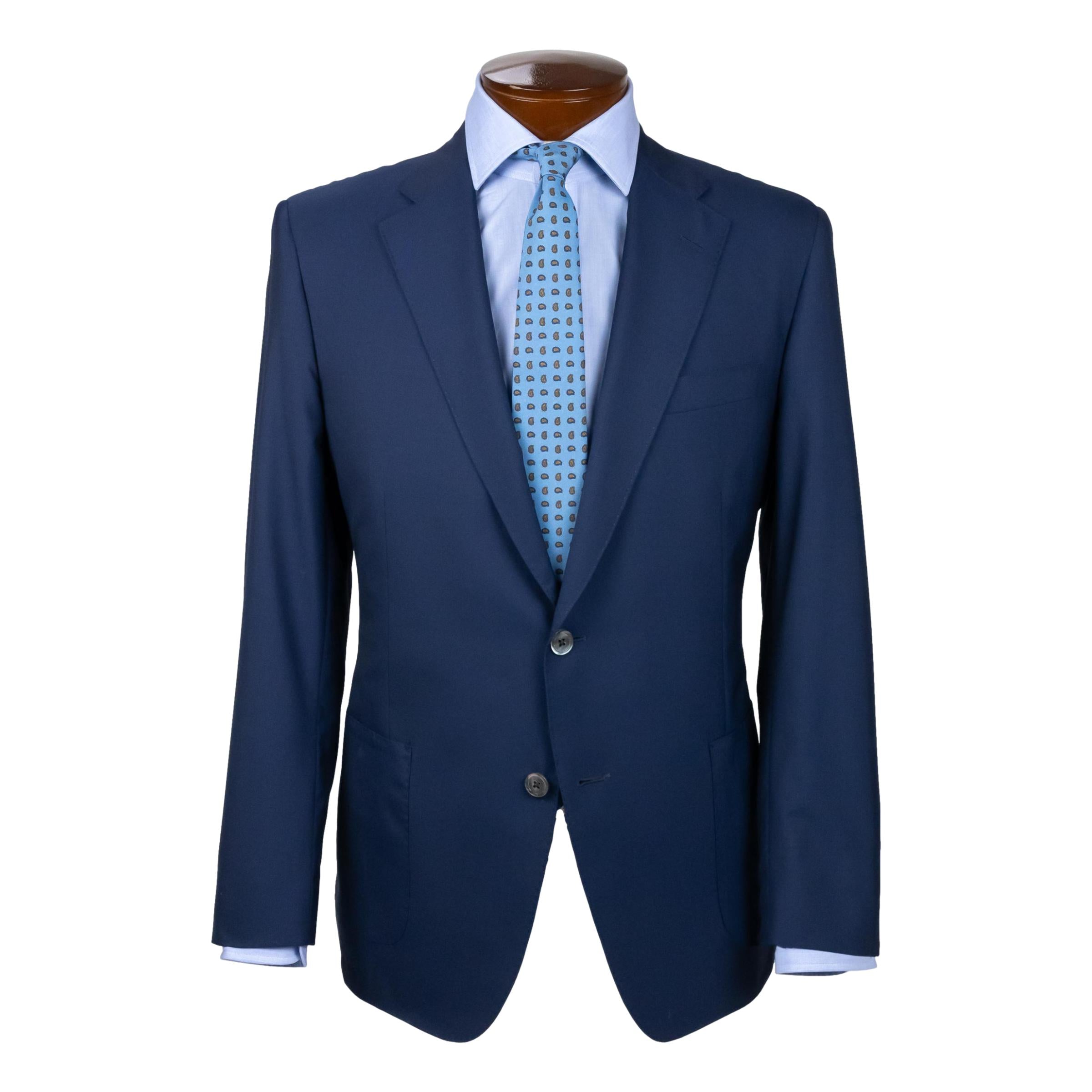 A travel blazer is essential for every true businessman or gentleman on the go. Classic in appearance yet inconspicuously impervious to wrinkles, the shell is made from Super 150s tropical weight wool poplin for breathable comfort and unparalleled wrinkle resistance. Quarter lined with side vents, it’s also a great option for warm weather climates. Pair with a patterned dress shirt and trousers for formal business or weddings or with a tee shirt and jeans on your next holiday. This jacket also features open patch pockets, full canvas construction, and is meticulously tailored for us in Canada.