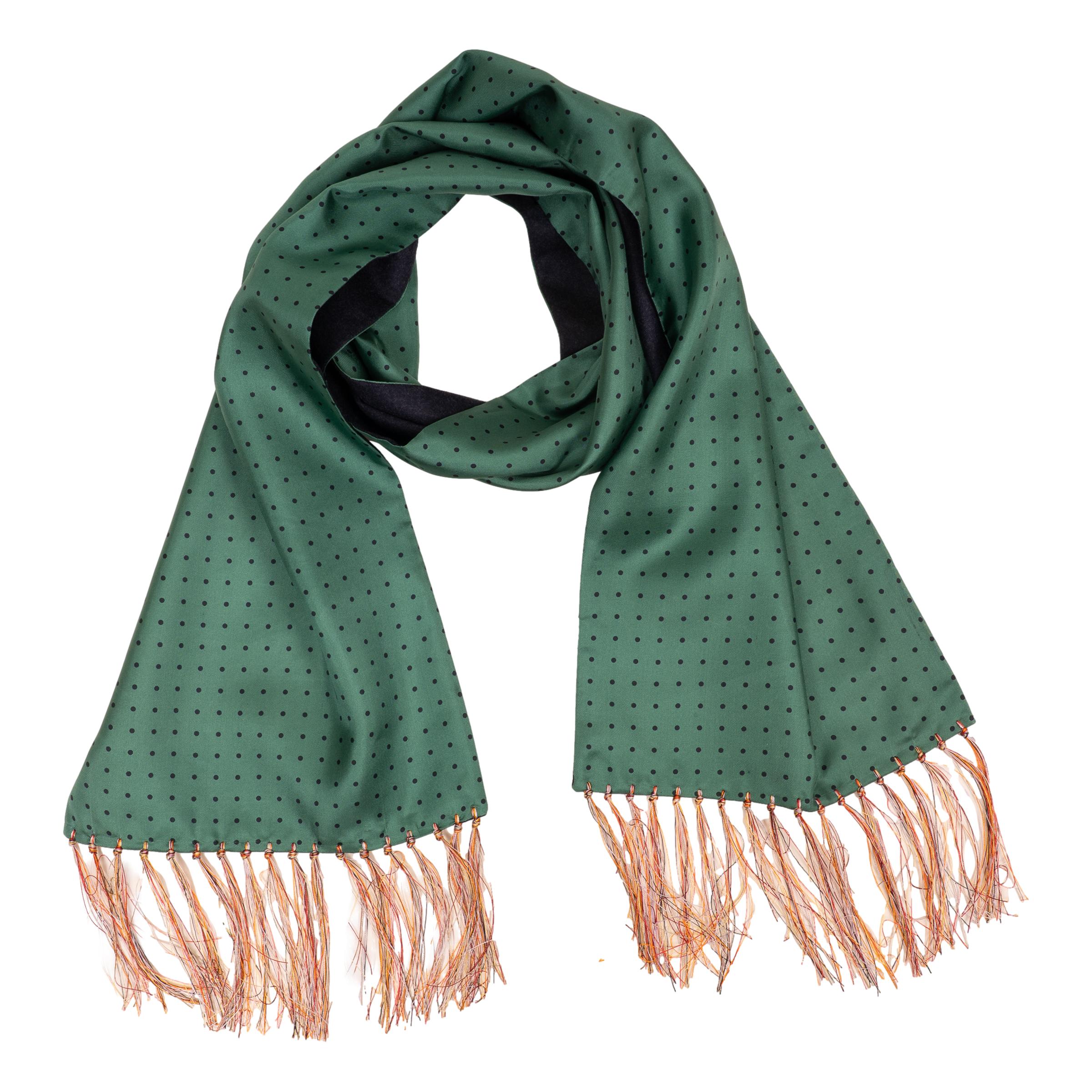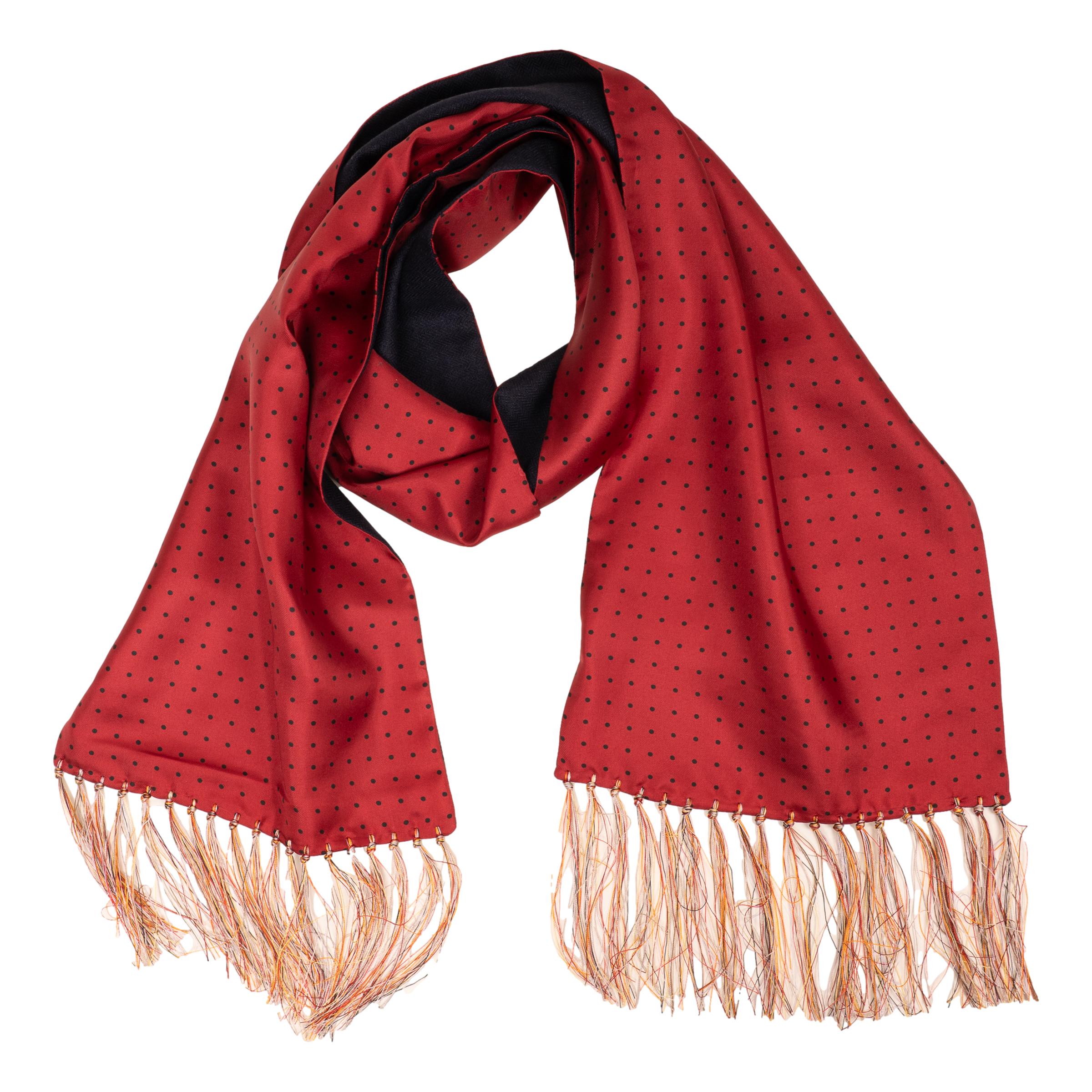 Silk Polka Dot Scarf with Fringe