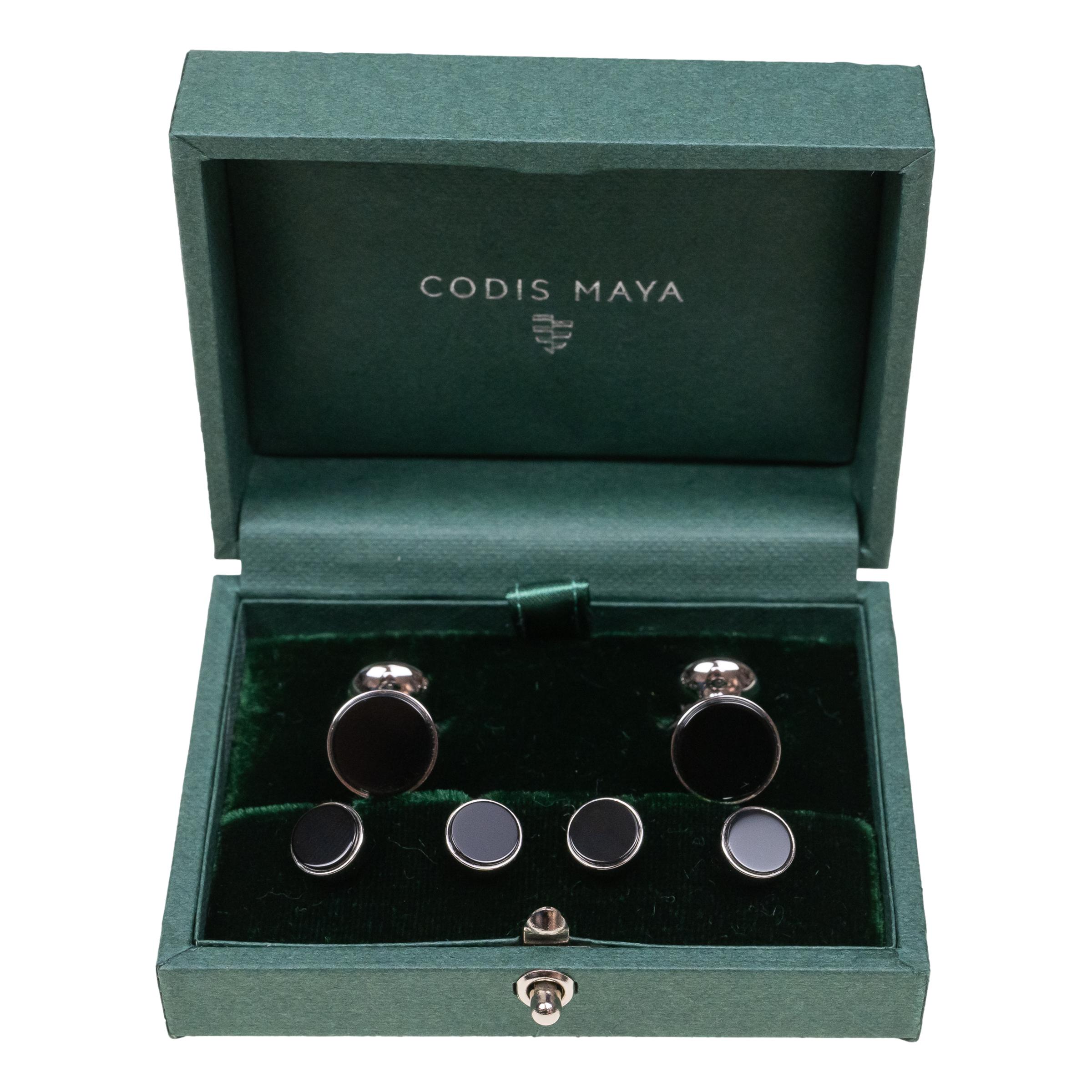 This dress set has been precision turned and polished by hand for a clean finish. Onyx has a long history of being used in jewellery, royal attire and art work dating back to the Ancient Egyptians and Greek ages. Black onyx will distinctively complement your black tie wear.