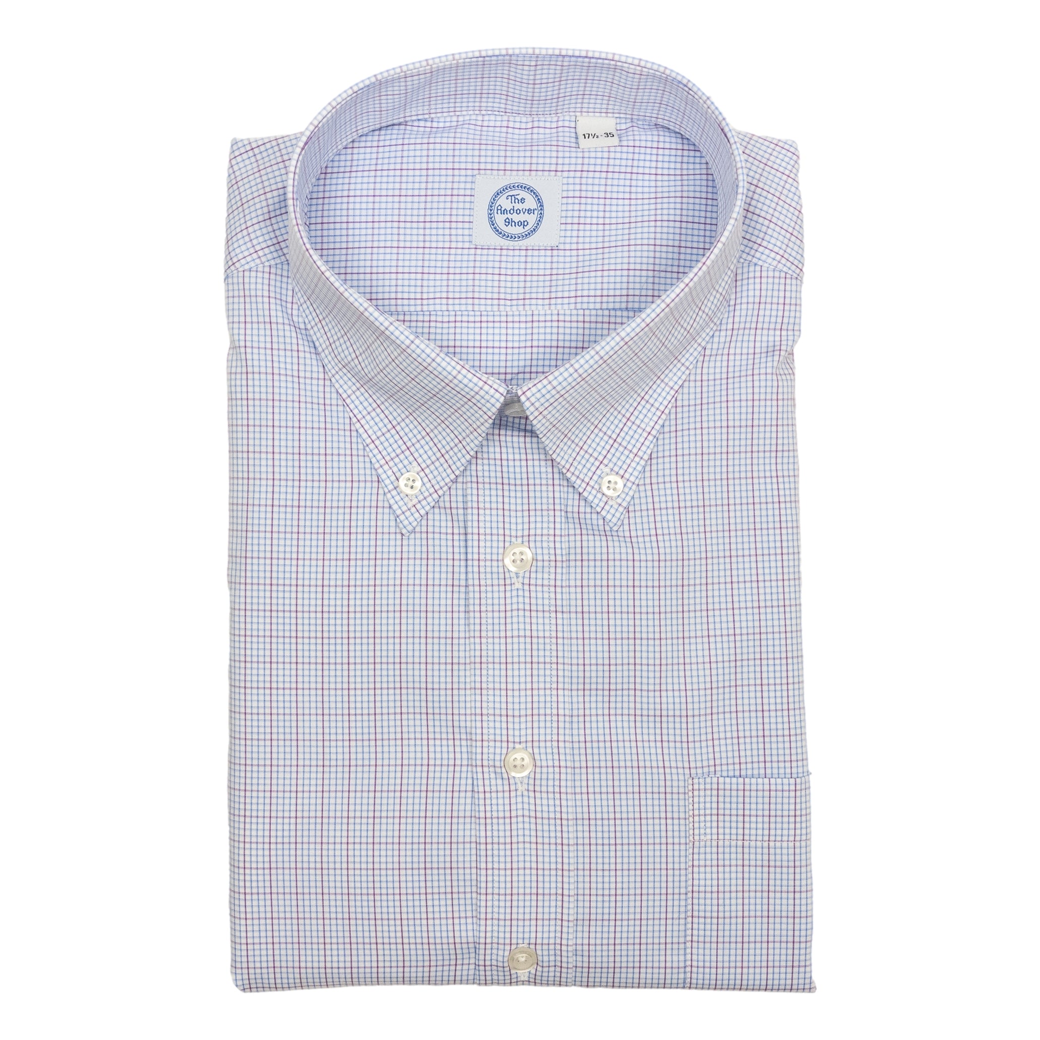 Blue and Dark Cranberry Tattersall Button Down Dress Shirt
