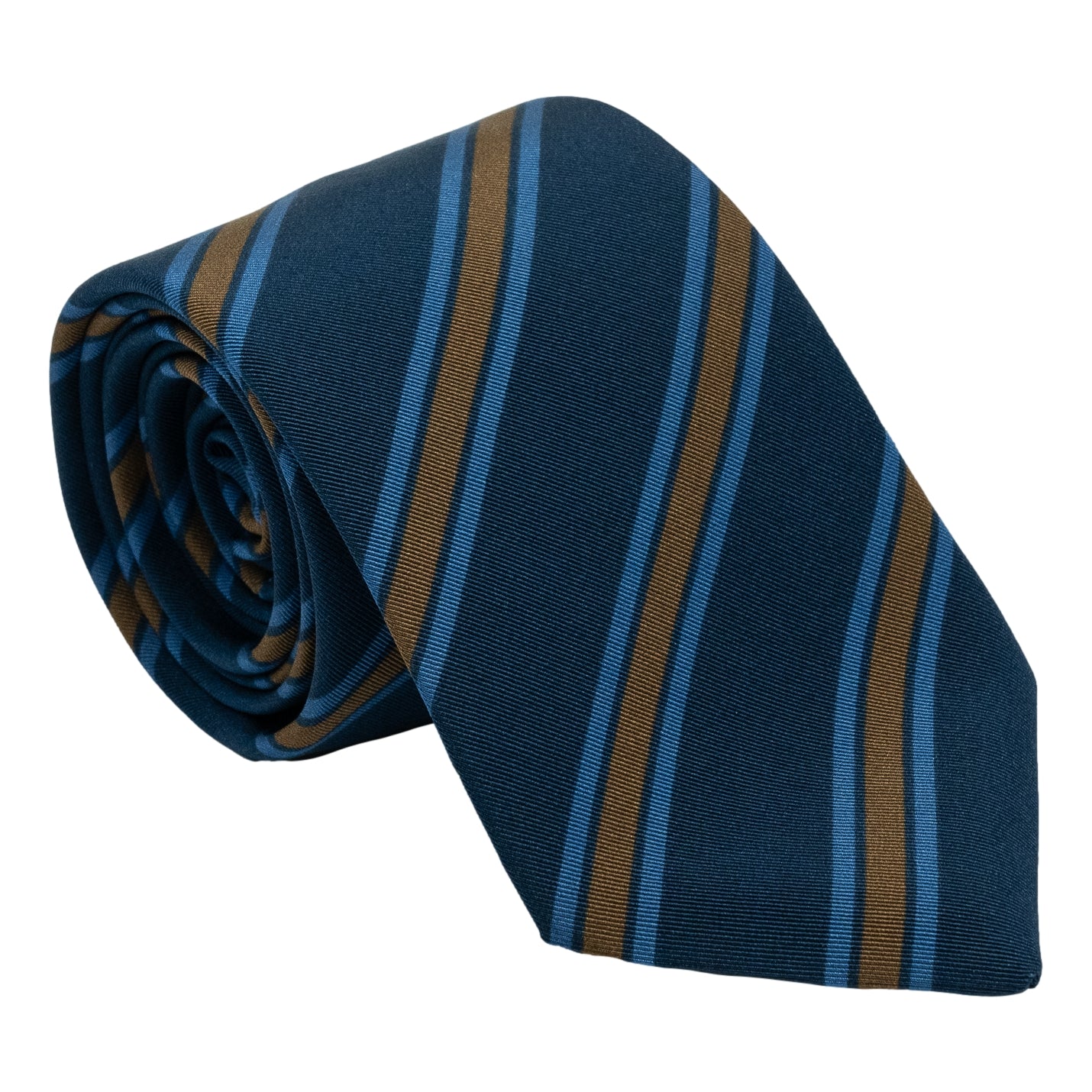 Navy with Brown and Sky Blue Striped Irish Poplin Tie