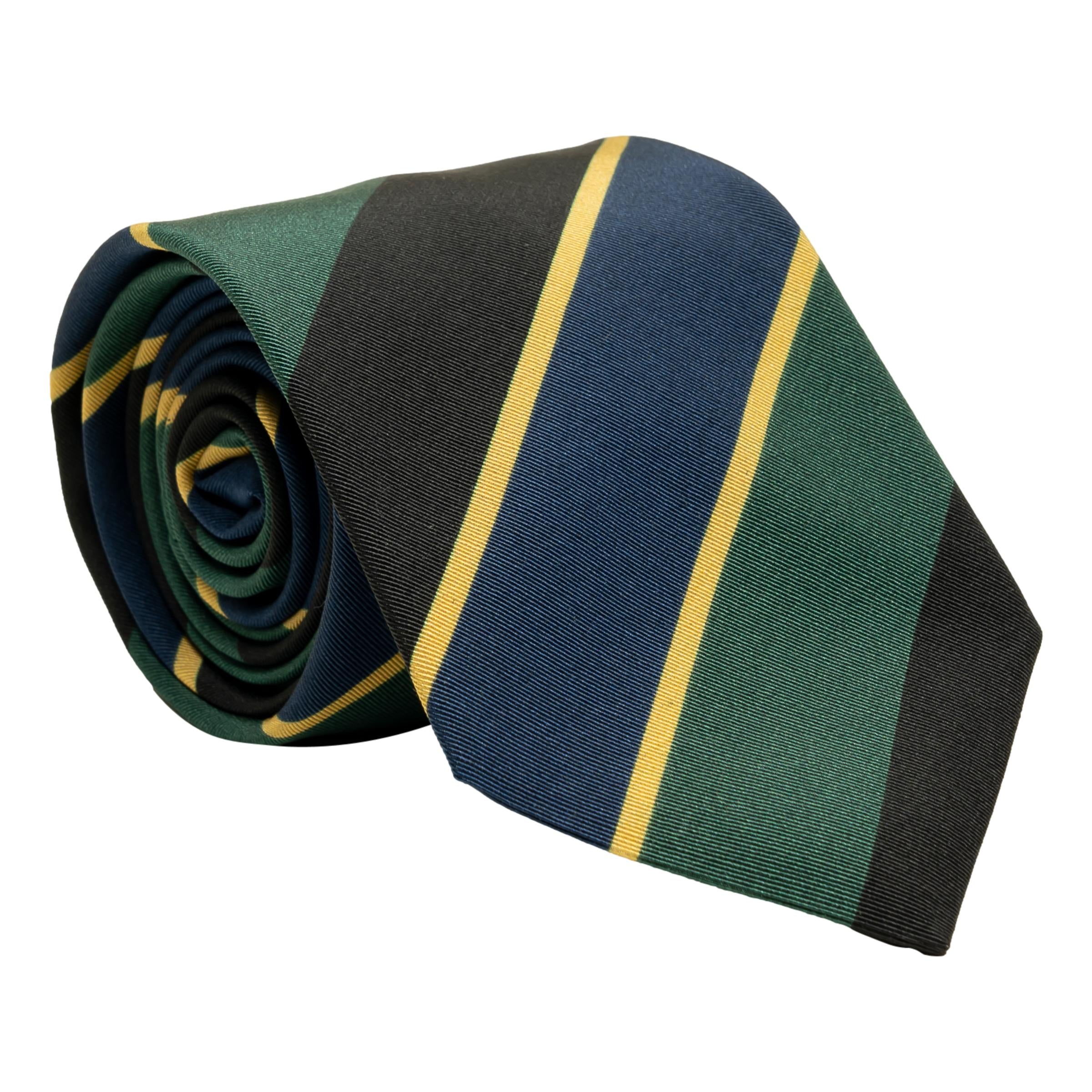 Olive, Black, Blue, and Gold Stripe Irish Poplin Tie