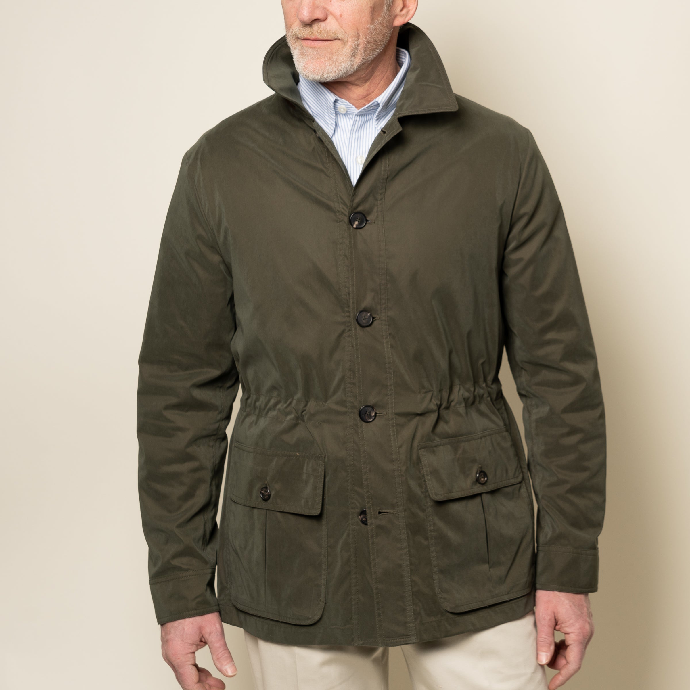 The Cortona Safari Jacket, made in Italy for The Andover Shop, is an ideal choice for spring and summer wear. It features two button-front hip pockets with side entry, along with a cinch-able waist for a more tailored fit. This is perfect for adding a touch of style and functionality to your warm-weather wardrobe.