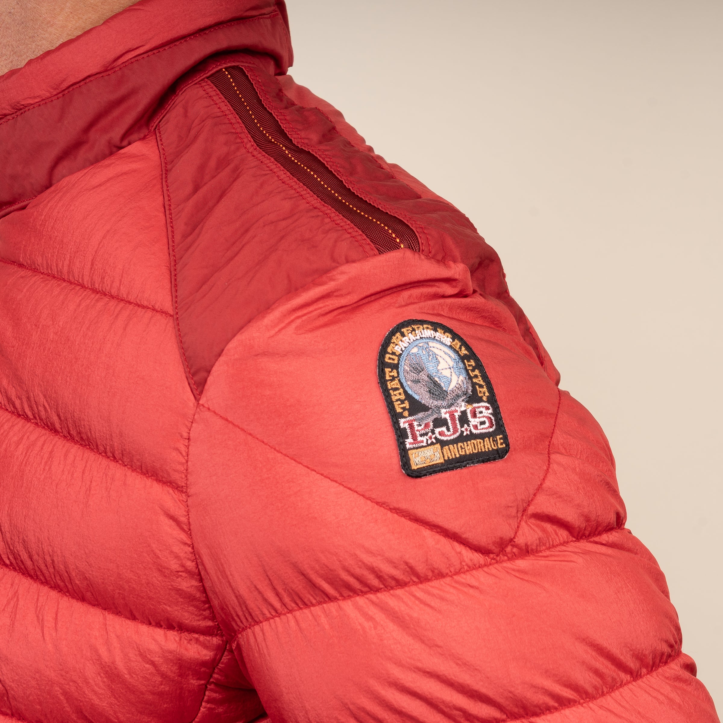 Wilfred is a quilted down jacket in high-density nylon taffeta, filled with 100% duck down, belonging to the Reloaded Superlight family. It is garment-dyed in a pastel color palette.