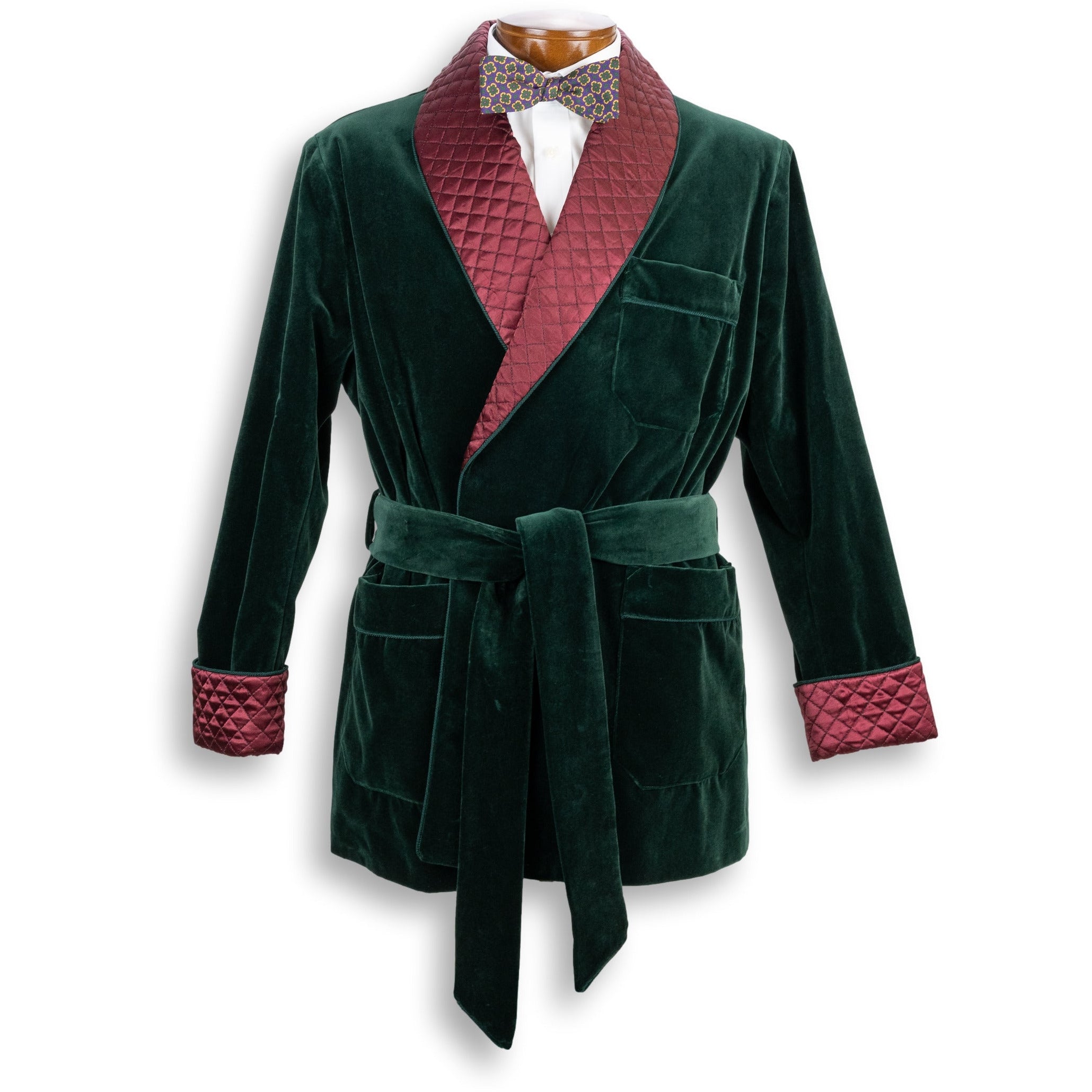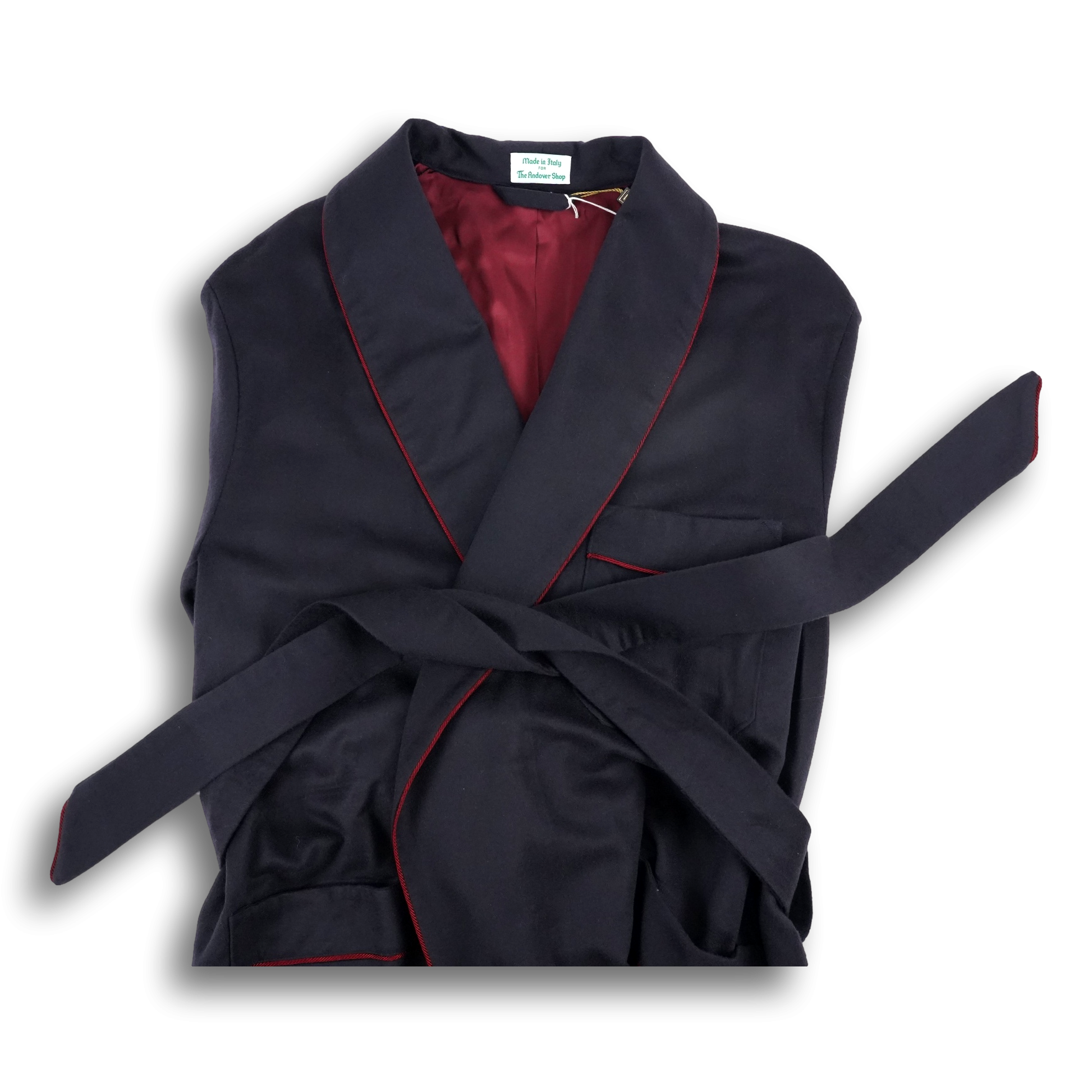 Blue with Red Windowpane Cashmere and Wool Blend Dressing Gown