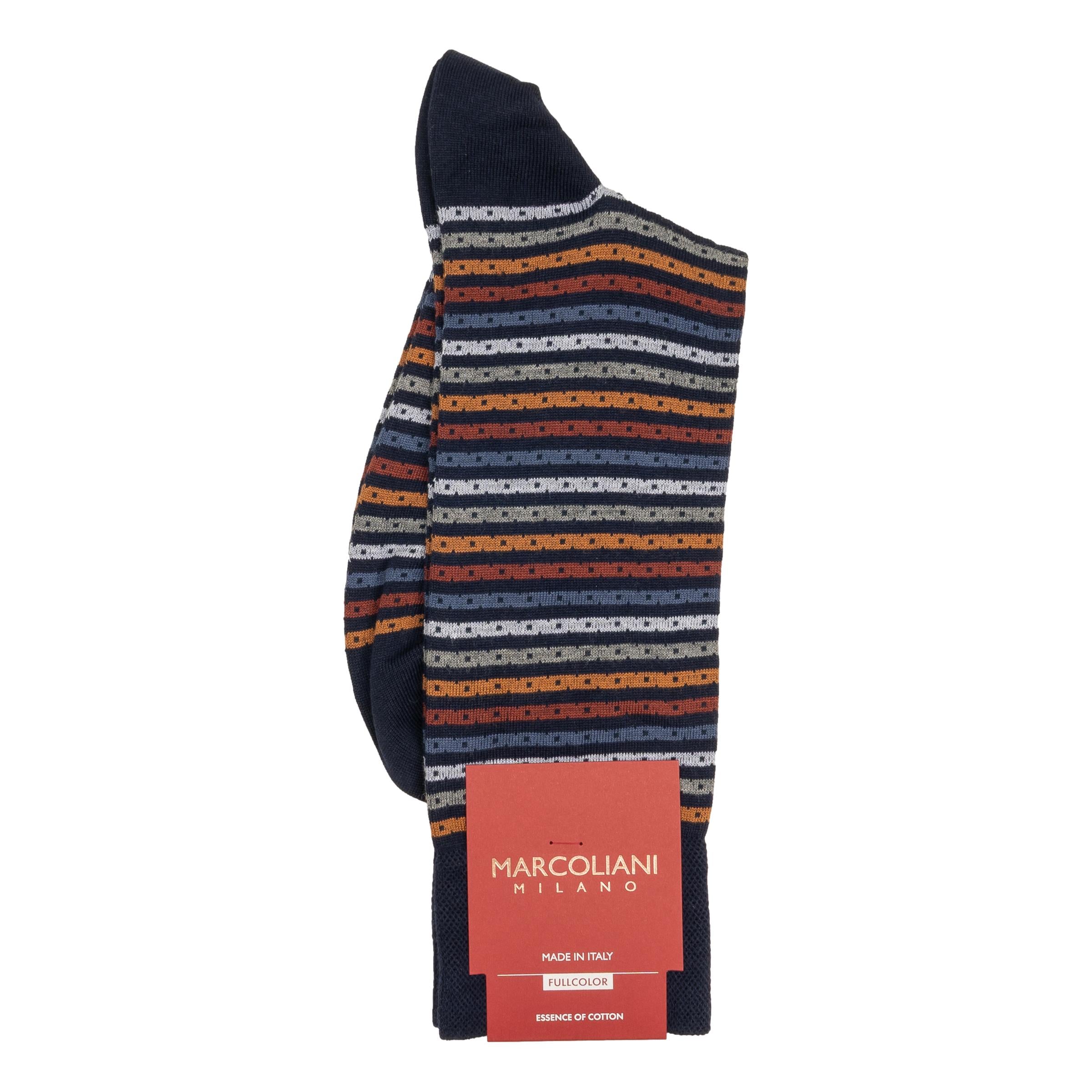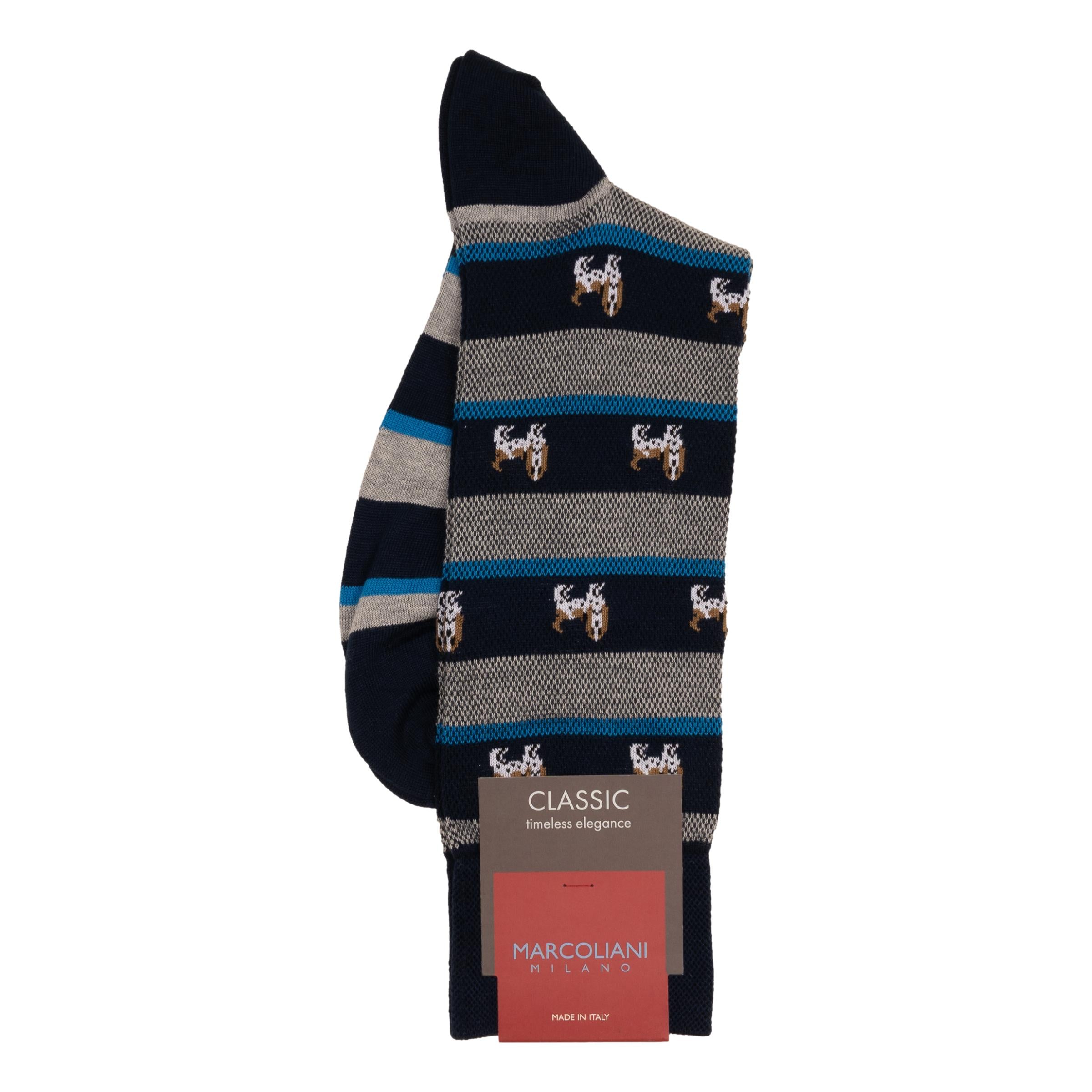 Pima Cotton Stripes and Pin Dot Mid-Calf Dress Socks