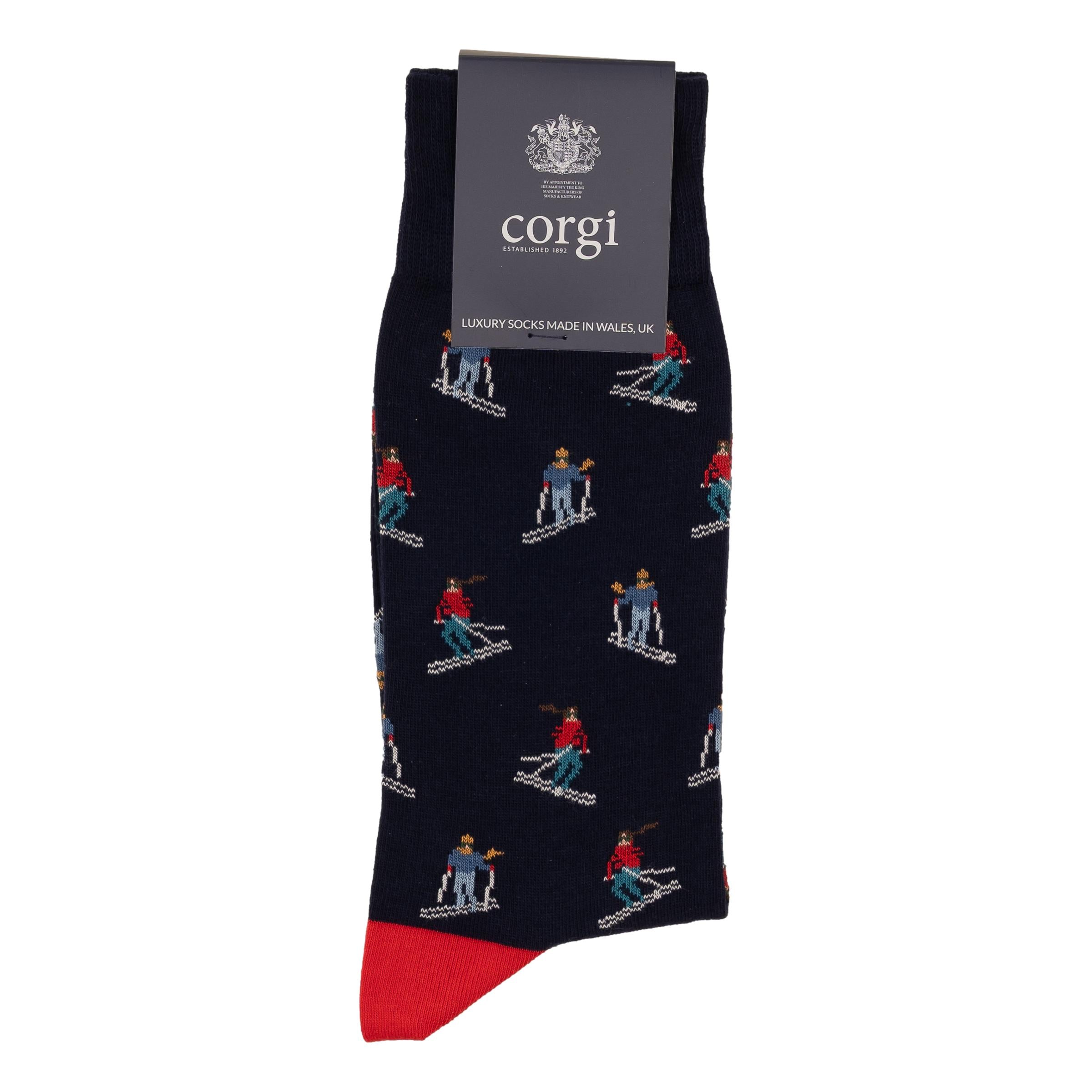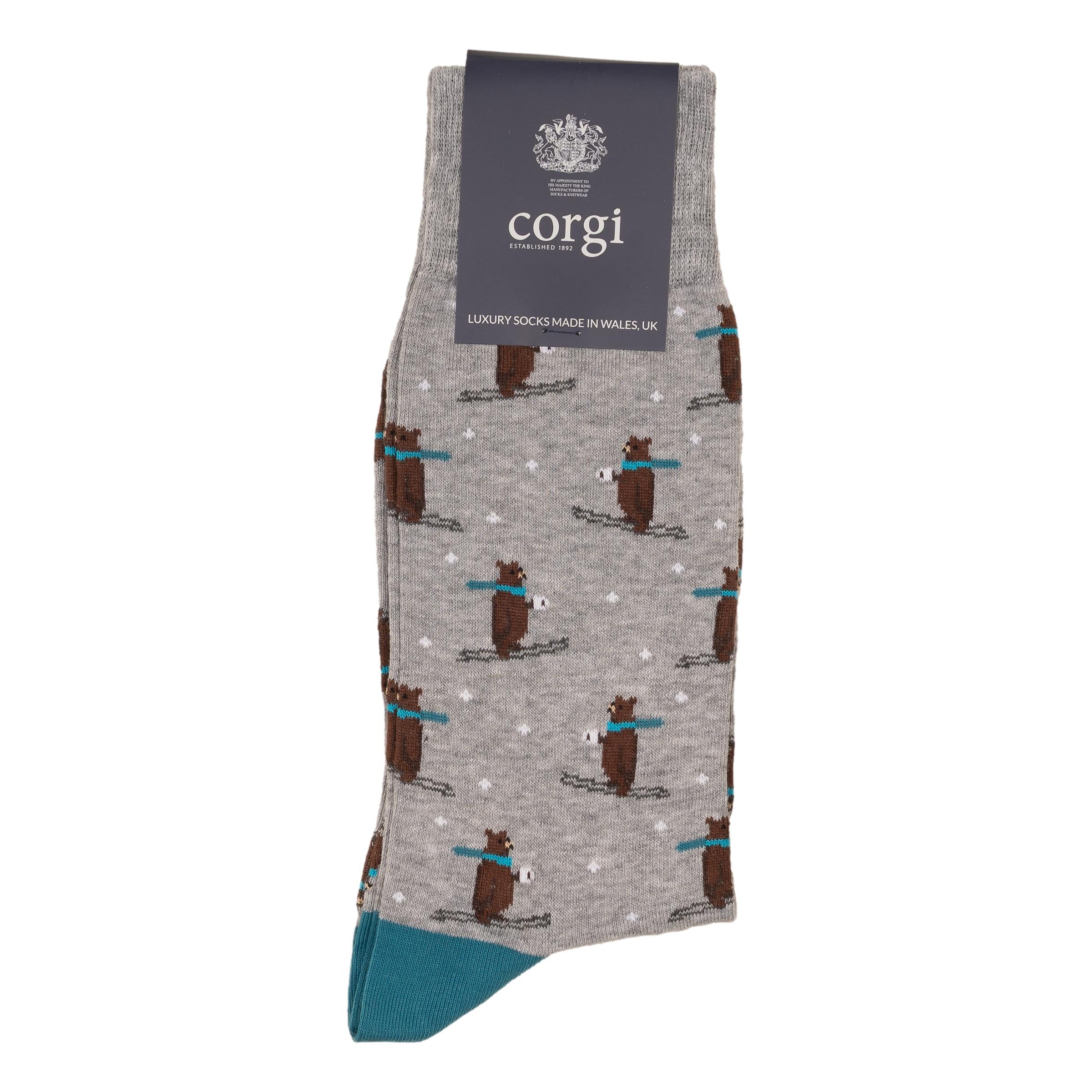 Bear Skiing Cotton Mid-Calf Dress Sock