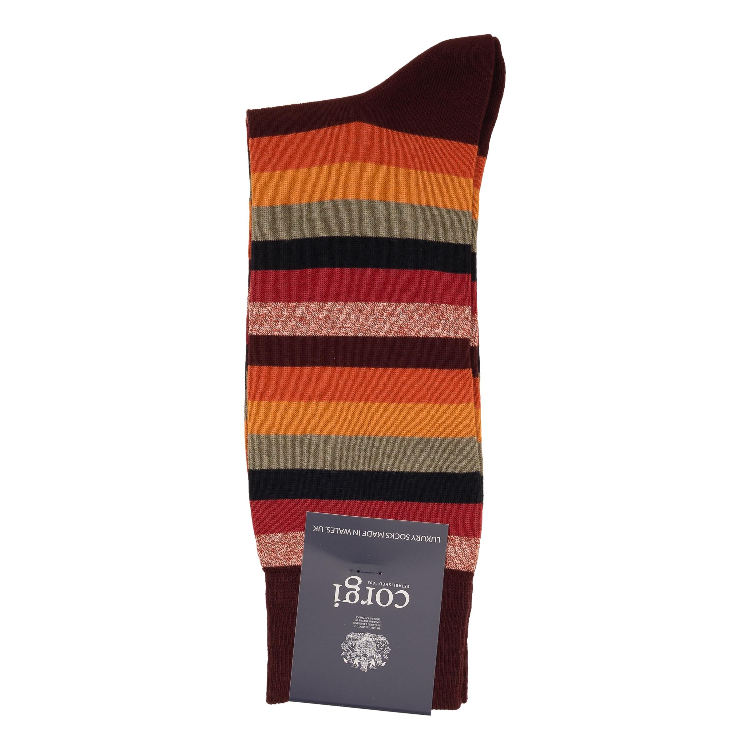 7 Color Stripe Cotton and Cashmere Mid-Calf Dress Sock