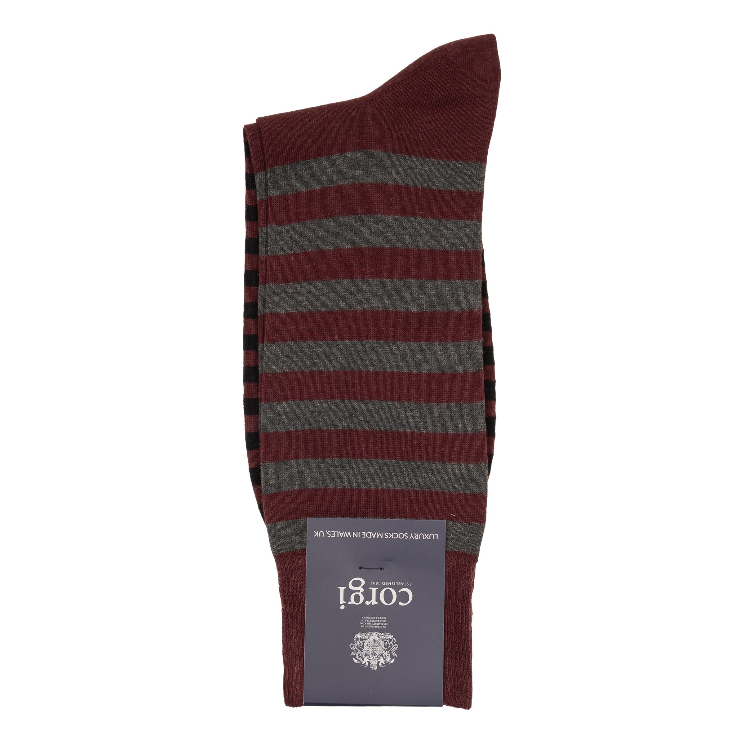 Red and Green Holiday Stripe Cotton Mid-Calf Dress Sock