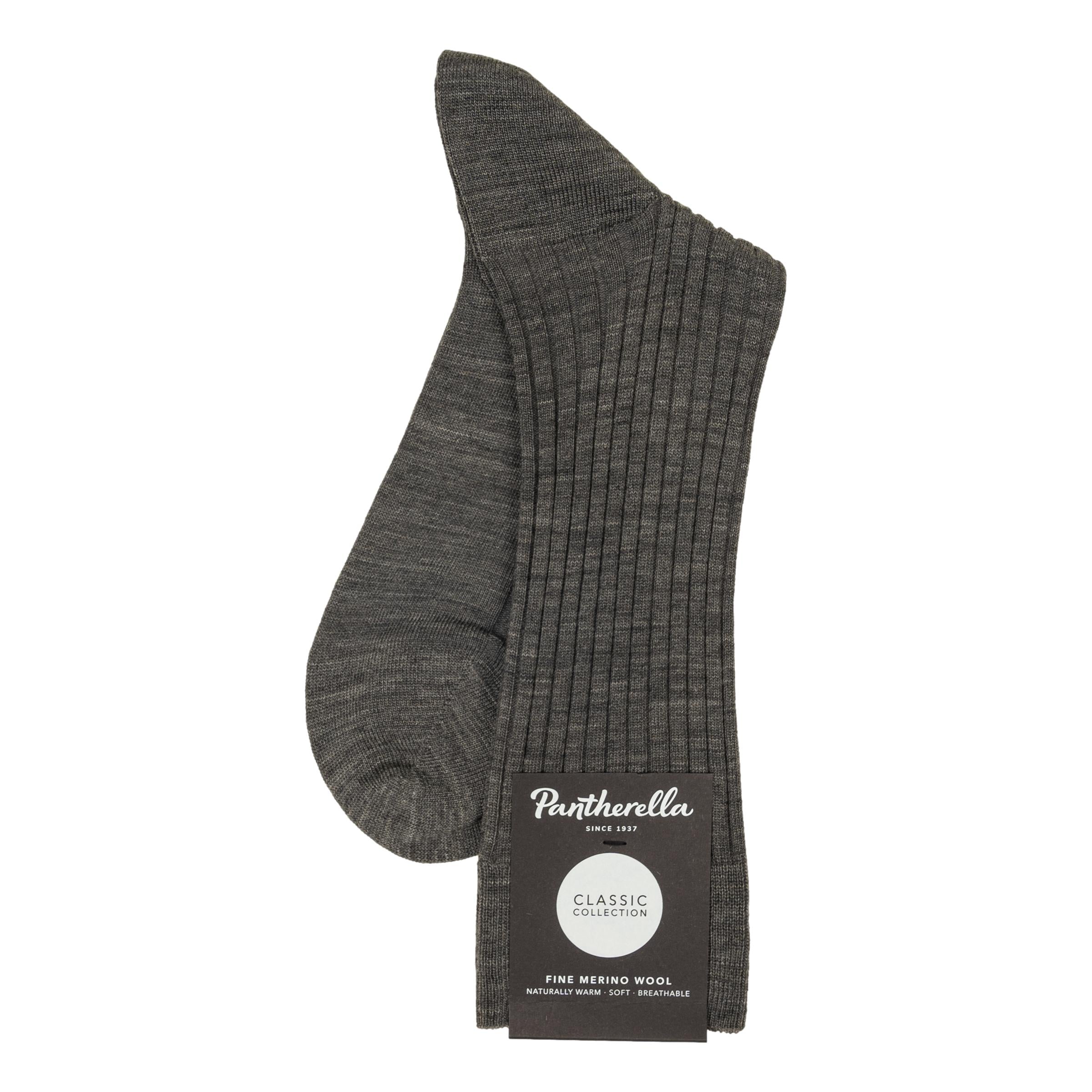 The right pair of socks can make or break a workday outfit in comfort and style. Made in England, this finer men’s sock is warm, soft and breathable with 70% fine merino wool and 30% nylon. The classic ribbed design sits at the calf, and the neutral hue helps refine business looks formal and casual. Seamless toe. Hand finished. Made by Pantherella.
