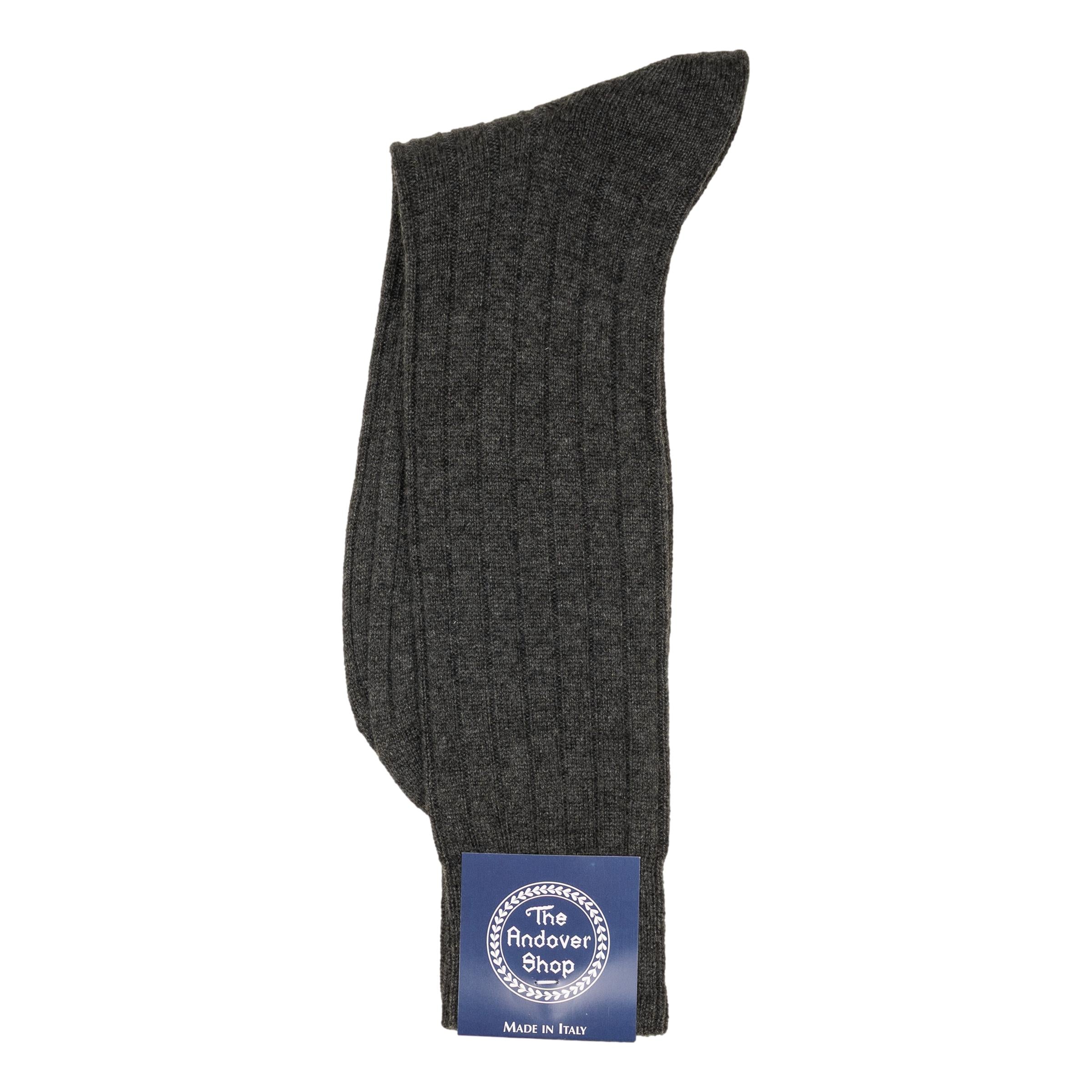 This Mid-Calf Cashmere Ribbed Dress Sock can be worn on any occasion, casual or formal, and is a quintessential staple for any gentleman who enjoys spicing up his wardrobe. Made from the finest cashmere in Italy for The Andover Shop. One size fits most.
