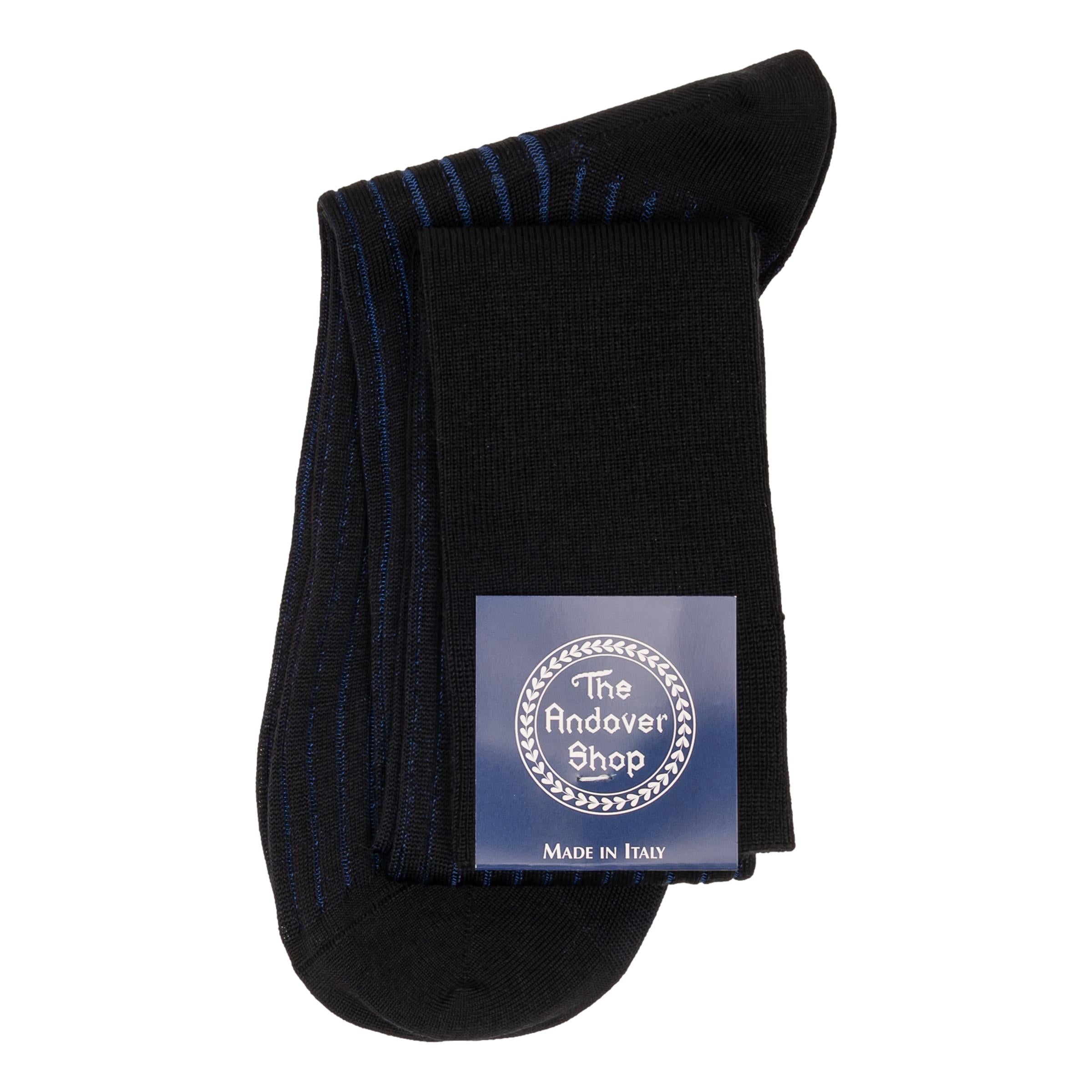 This over the calf wool dress sock can be worn on any occasion, casual or formal, and is a quintessential staple for any gentleman who enjoys spicing up his wardrobe. Made from fine wool in Italy for The Andover Shop. One size fits most. Most colors are 60% wool, 25% cotton and 15% nylon.