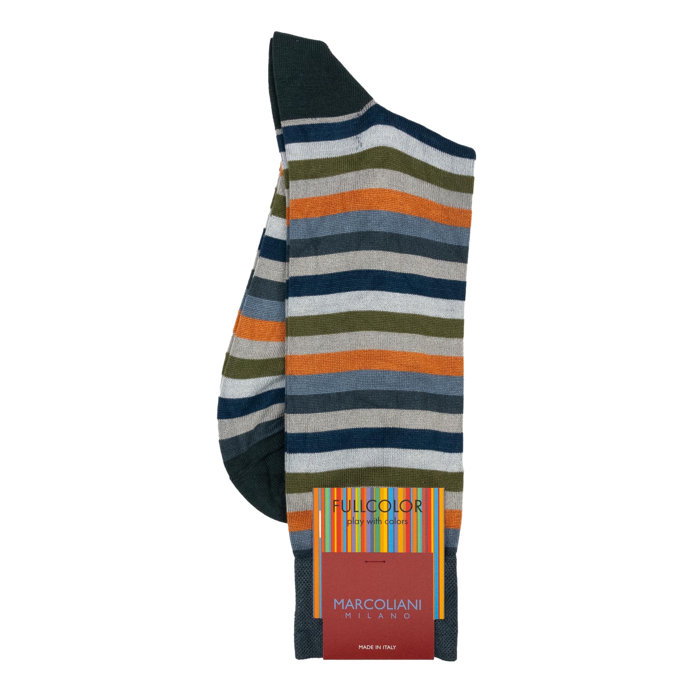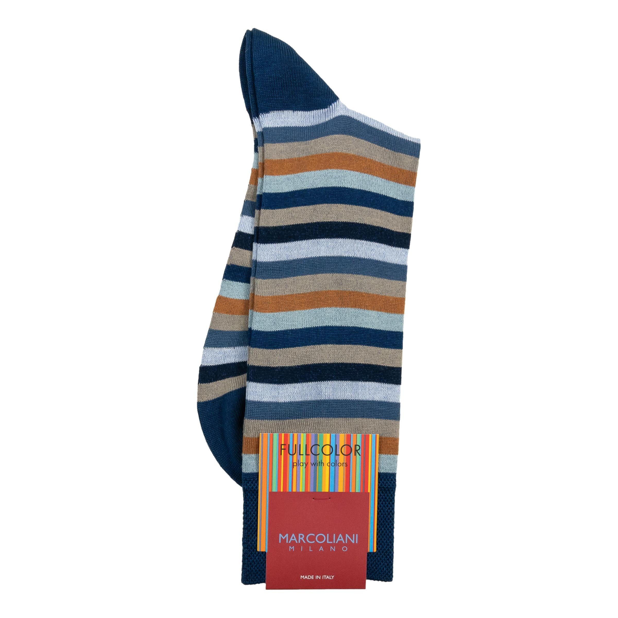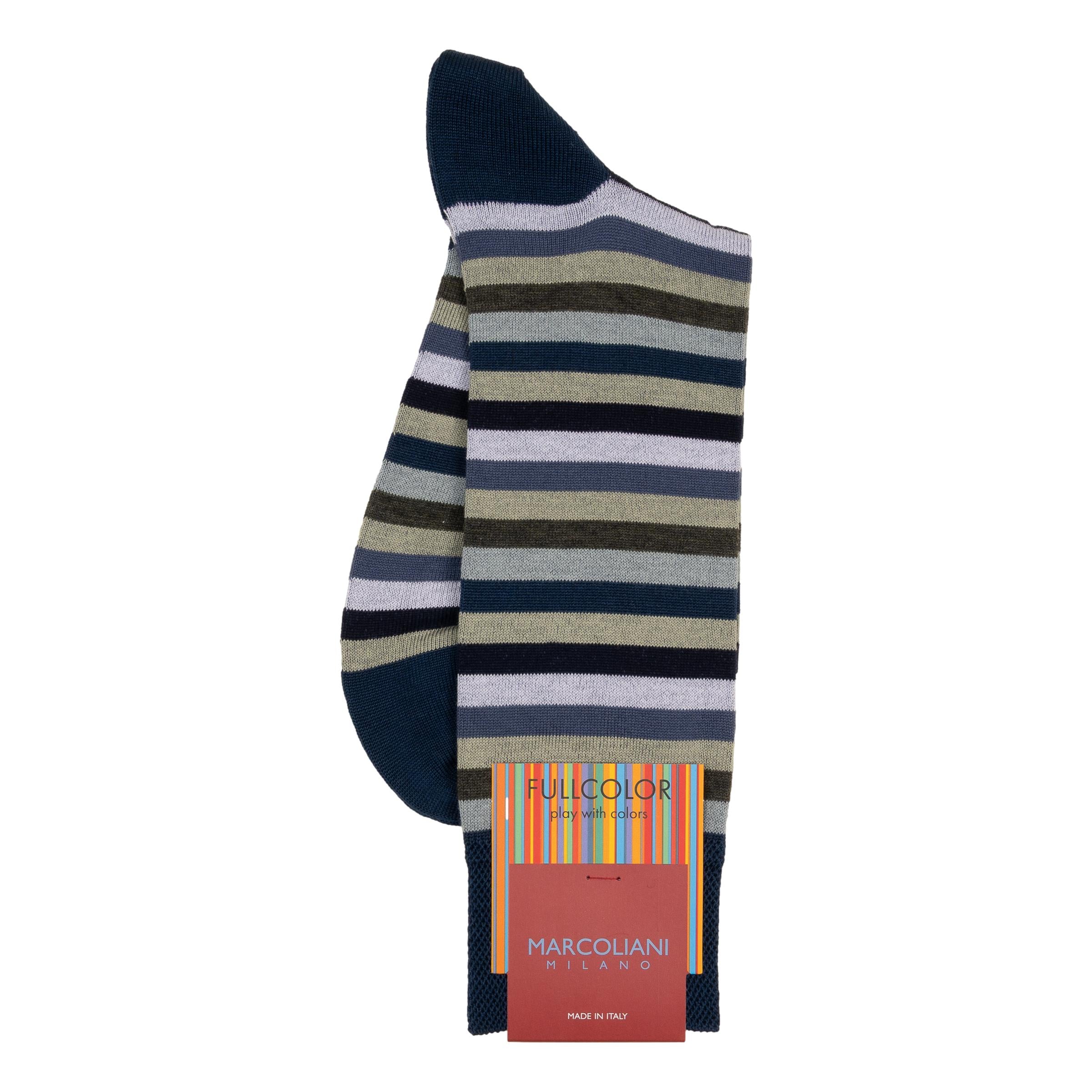 Pima Cotton Rainbow Stripe Mid-Calf Dress Socks