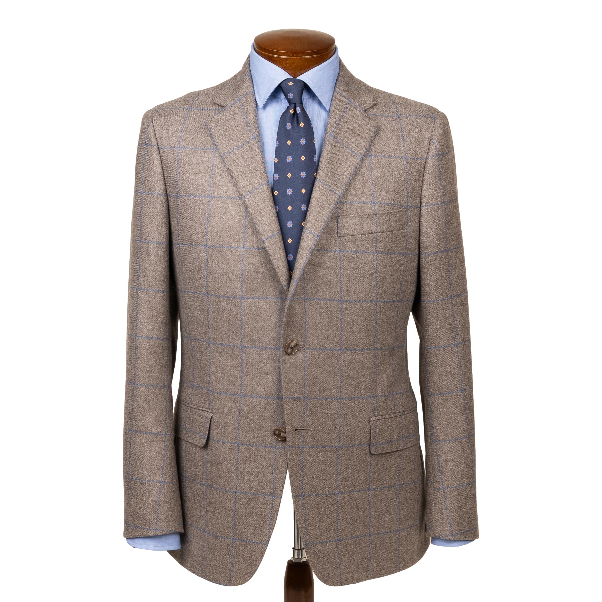 Dune with Slate Blue Windowpane Pure Cashmere Sport Coat