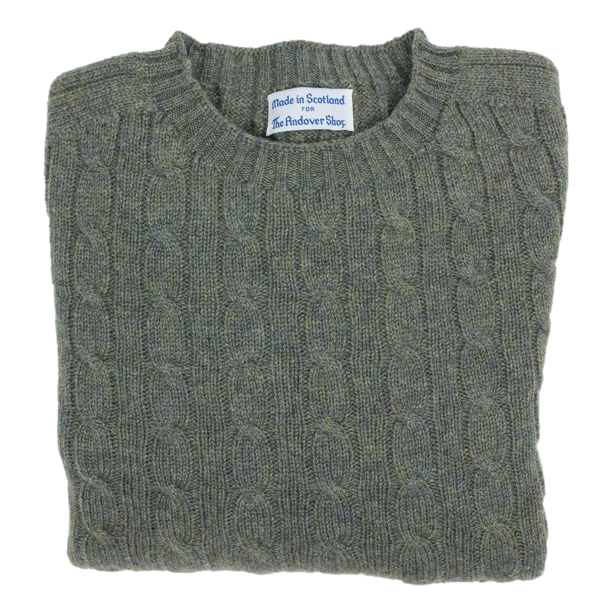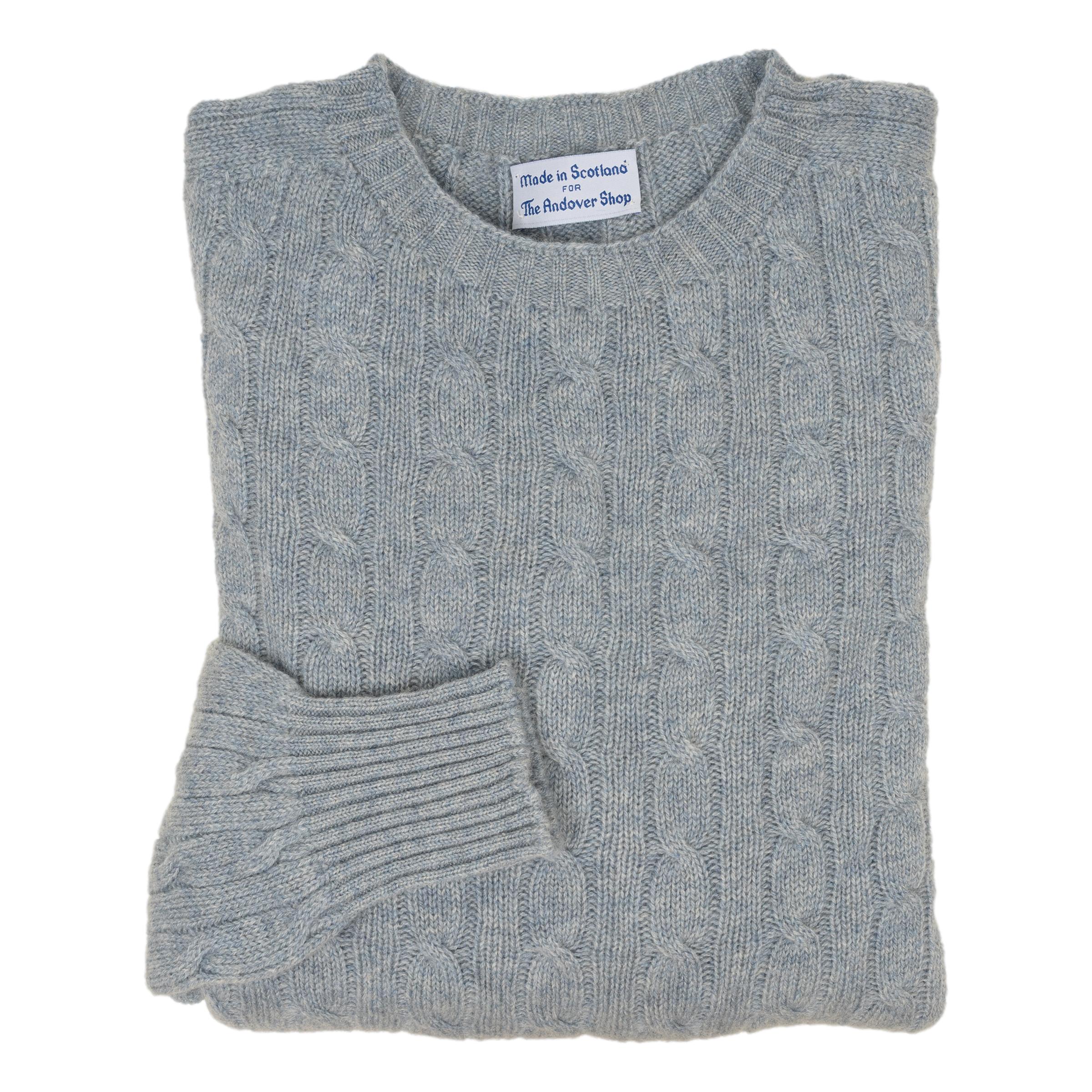 These 100% cashmere cable knit sweaters are made in Scotland for The Andover Shop from the finest cashmere. Medium weight and incredibly warm, these cashmere sweaters are perfect for a brisk fall evening and are even great well into winter. 2-ply cashmere pullover, round neck, and saddle shoulder.