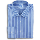 Blue End-on-End with Alternating Cluster Stripes Spread Collar Dress Shirt