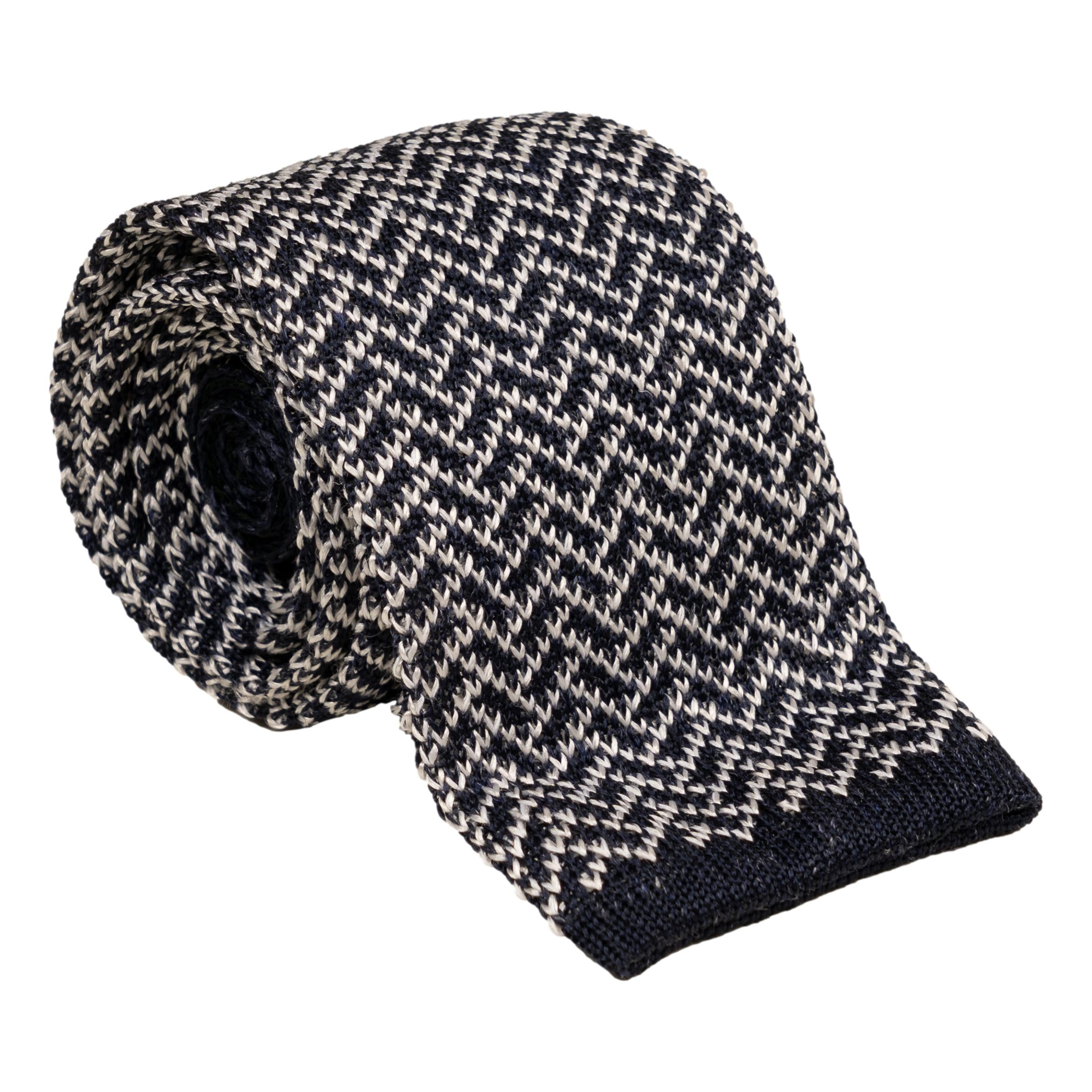 Herringbone Silk and Linen Knitted Tie