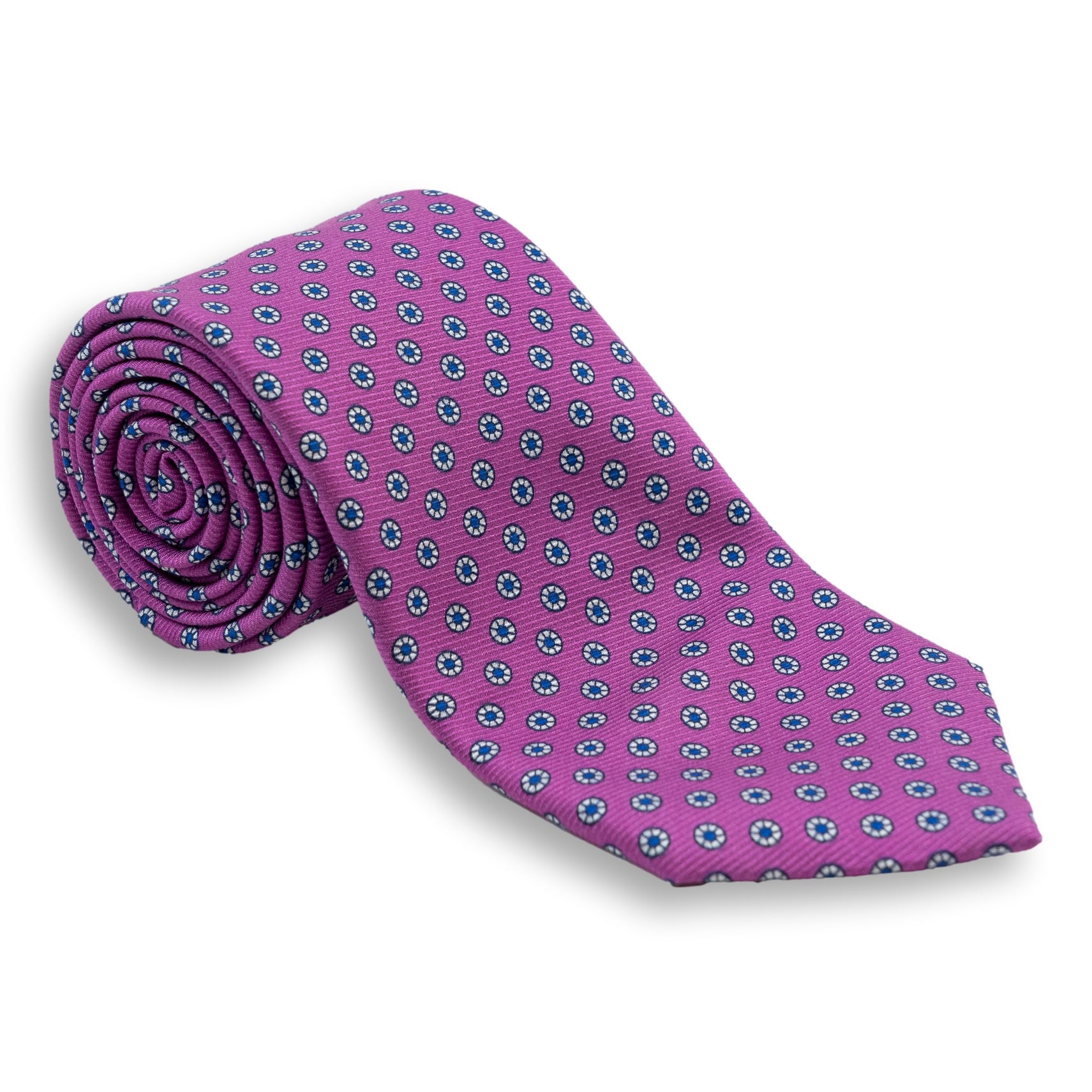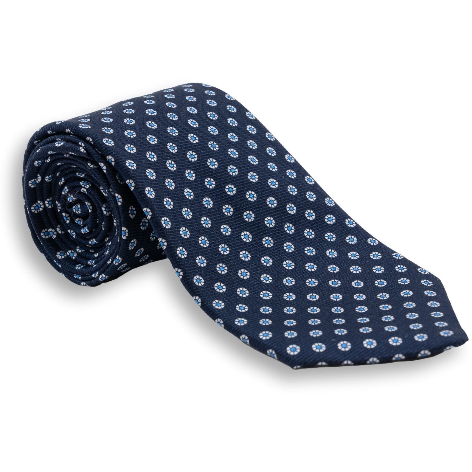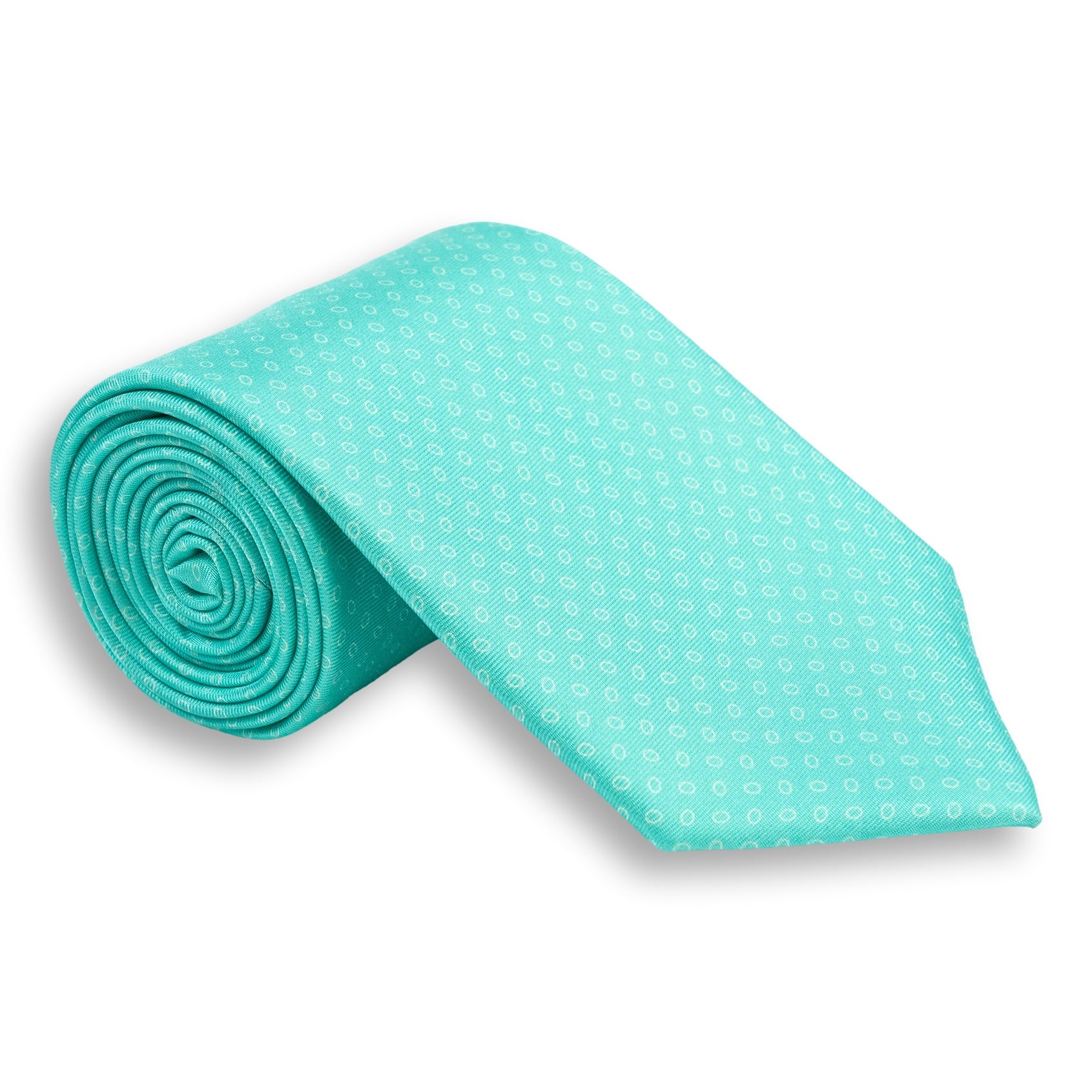 Small White Circular Pattern Silk Print Tie