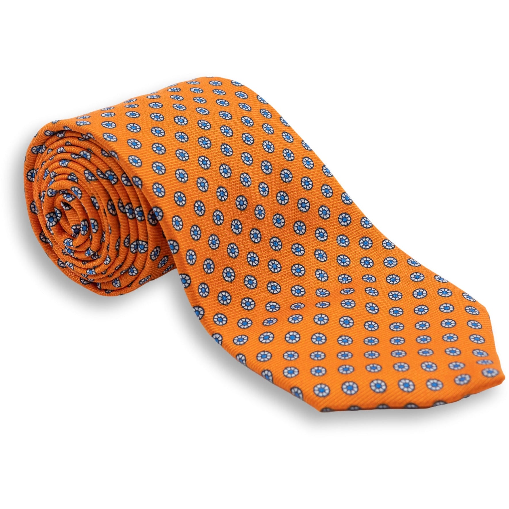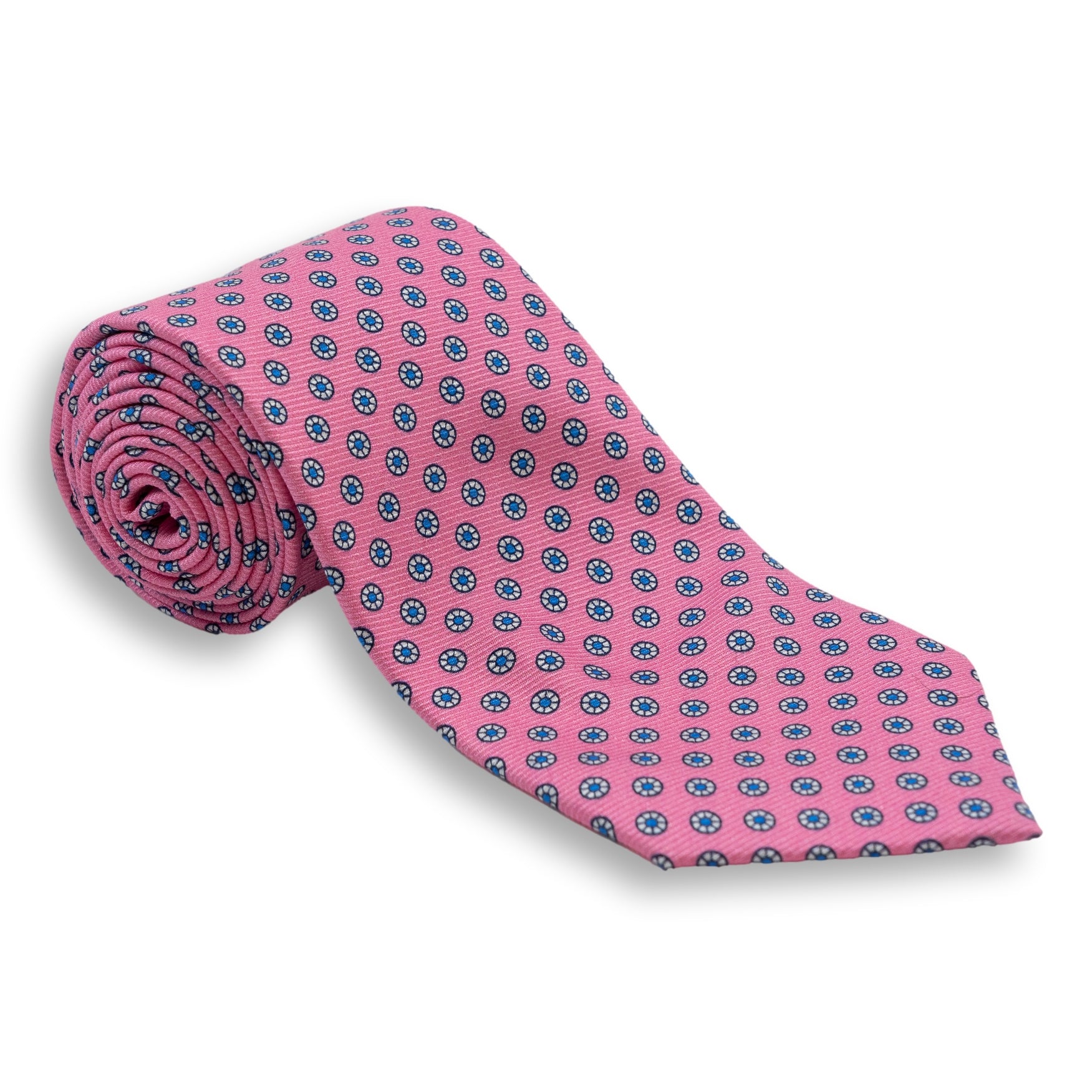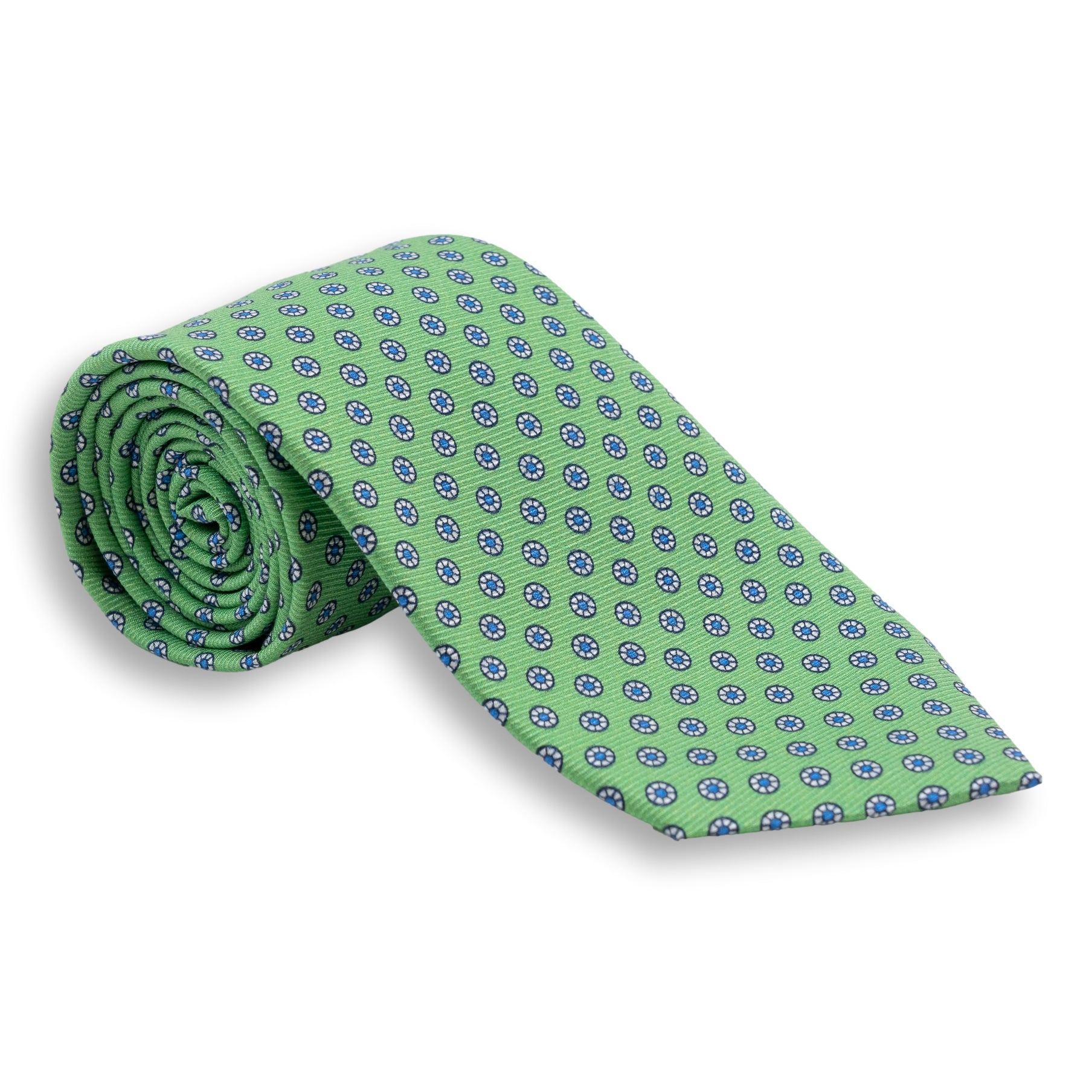 Small White Circular Pattern Silk Print Tie