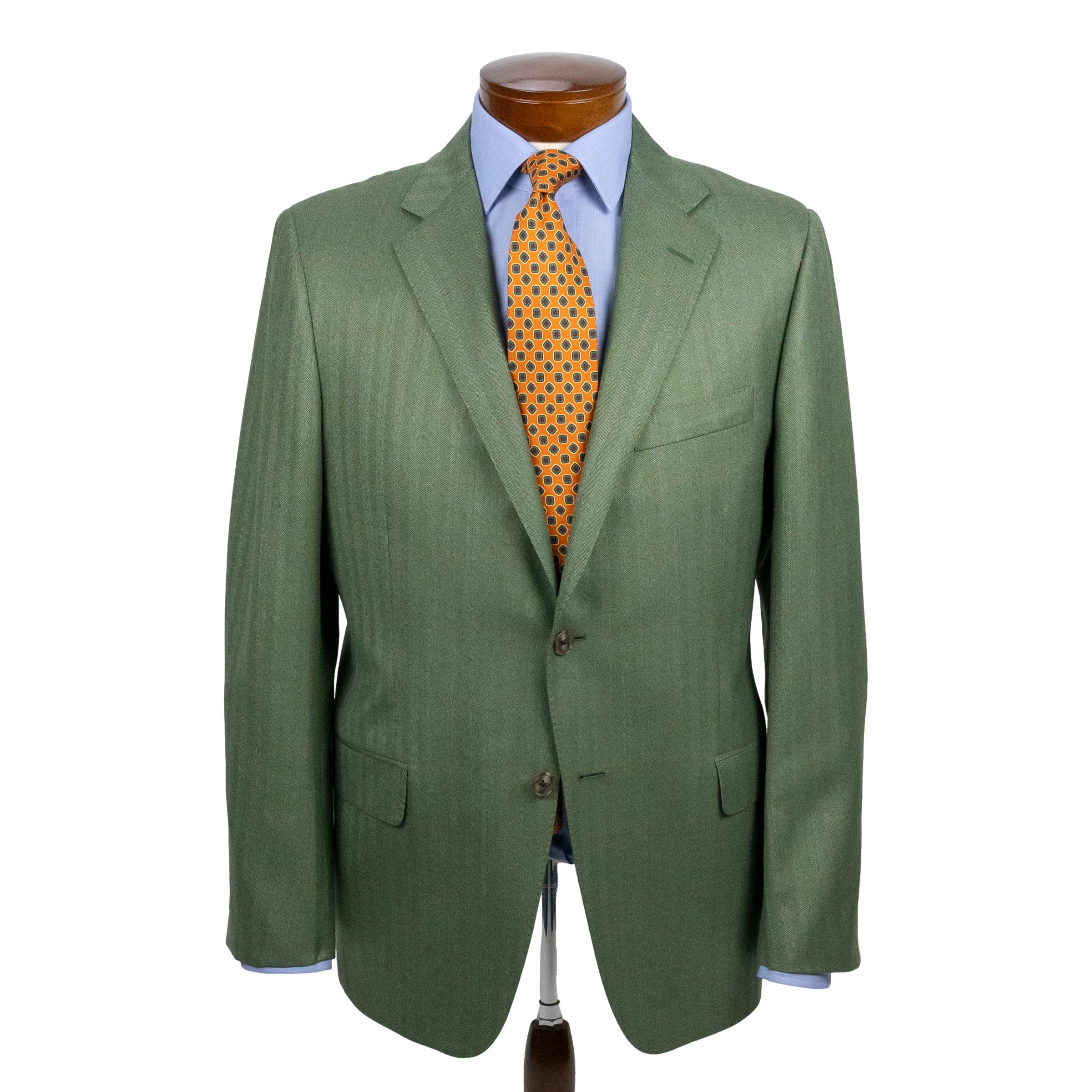 Green Herringbone with Red and Rose Windowpane Wool Sport Coat