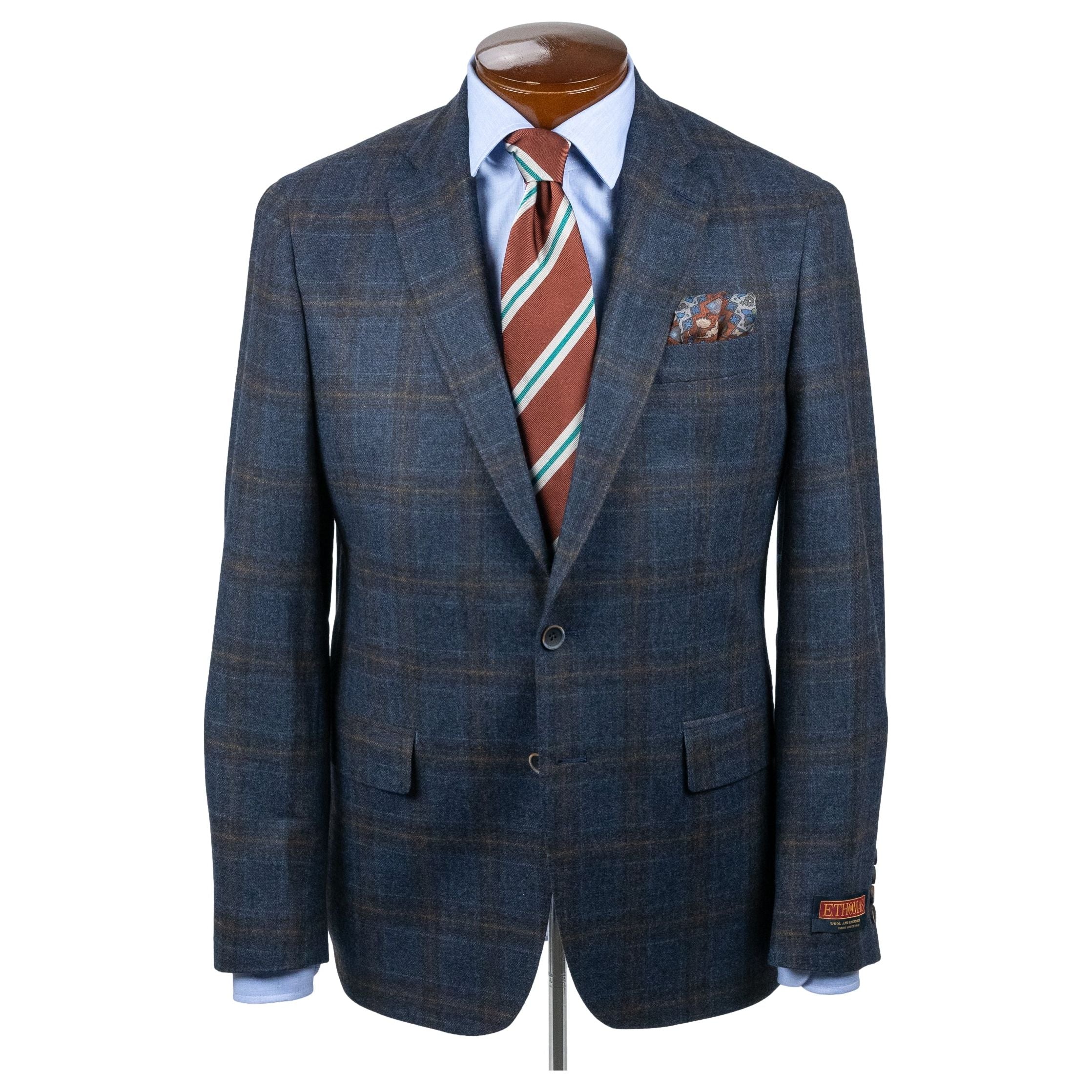 Navy with Olive and Brown windowpane Wool and Cashmere Sport Coat
