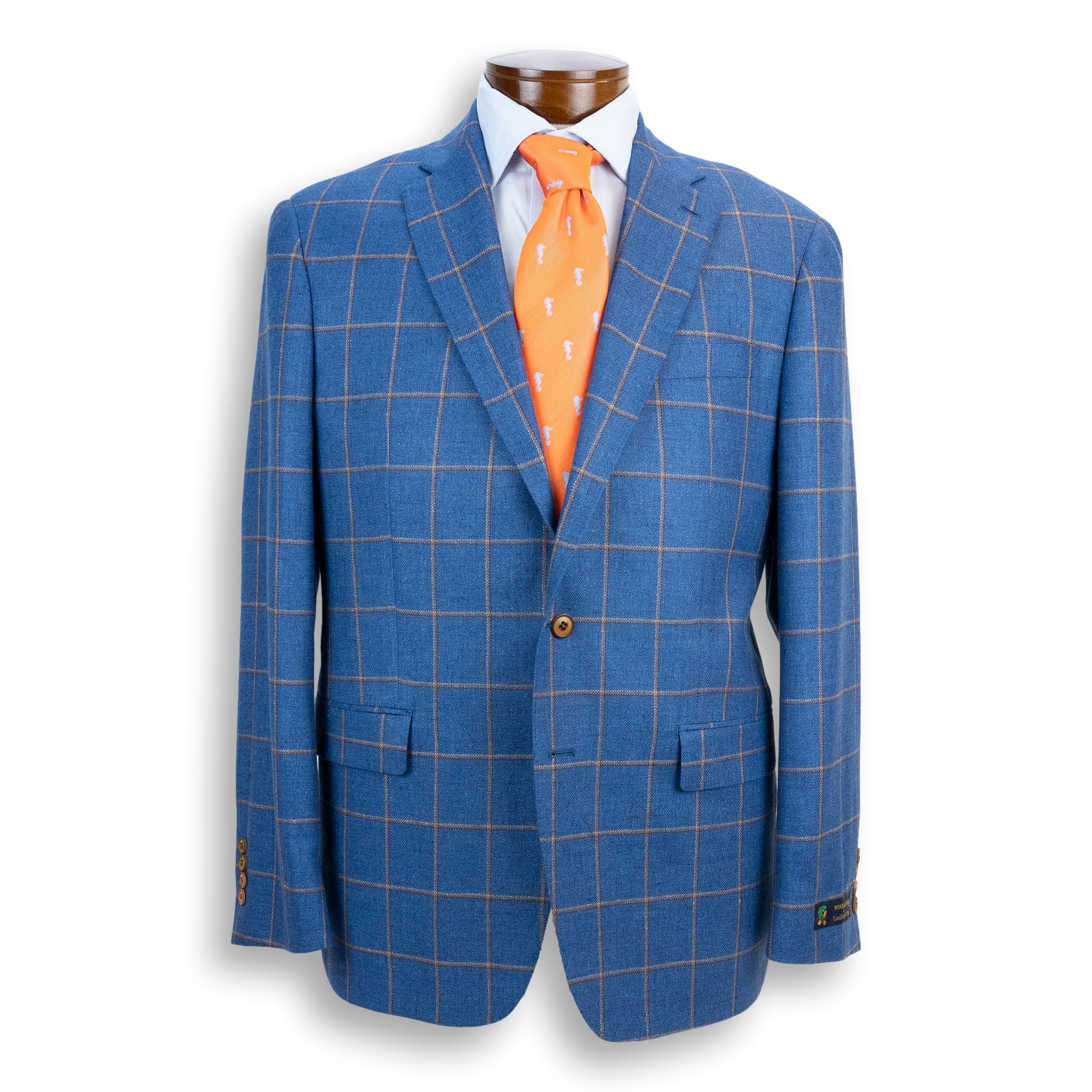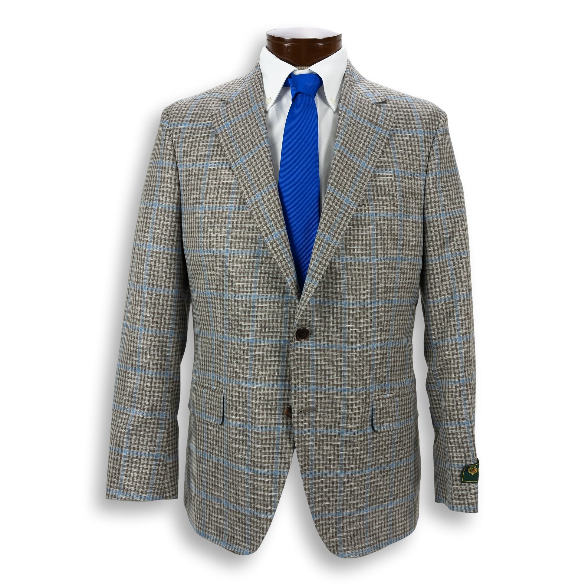 Tan Check with Sky Blue Windowpane Wool, Silk, and Linen Loro Piana Sport Coat