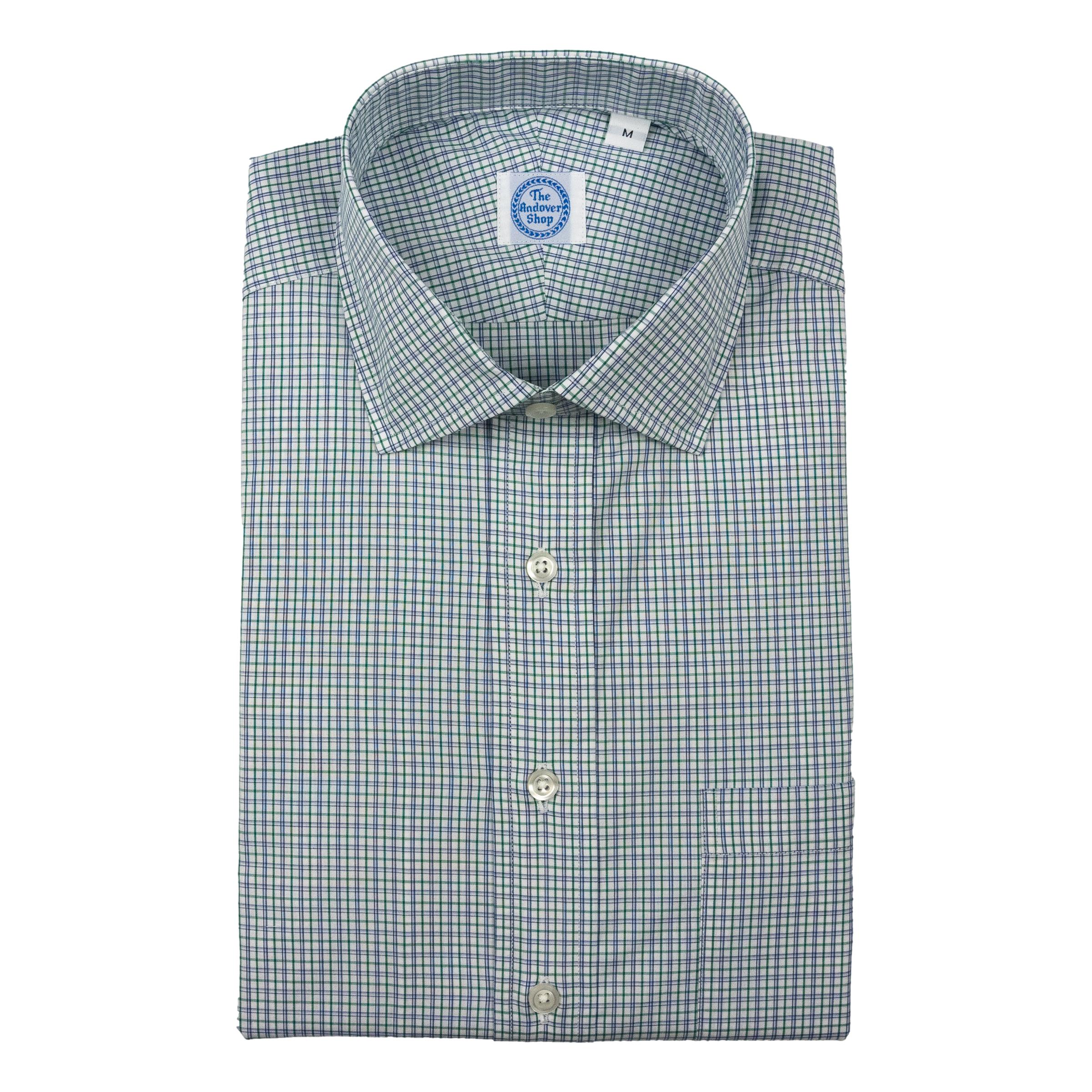 Green and Blue Pencil Tattersall Spread Collar Sport Shirt