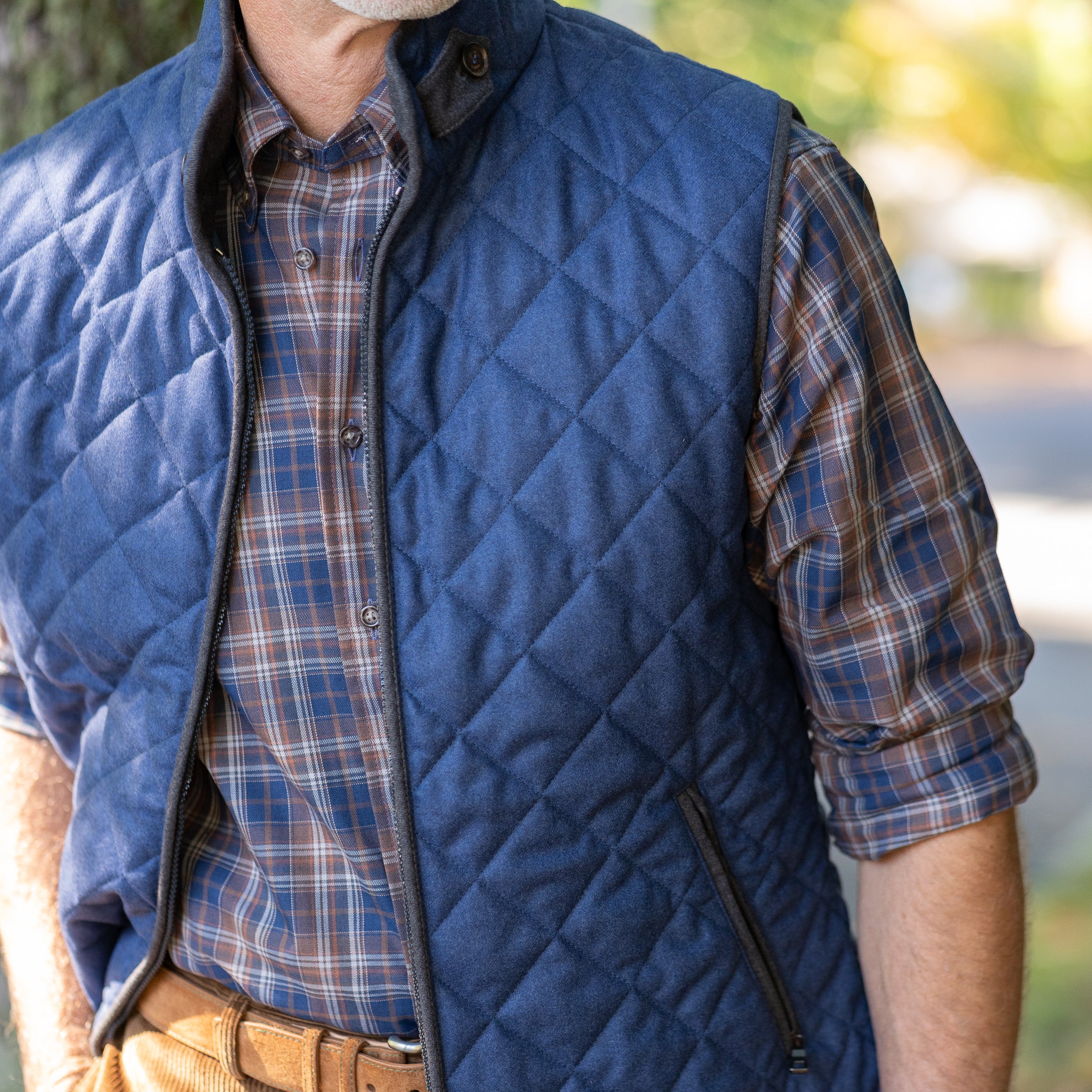 Taupe and Navy Plaid Viyella Sport Shirt