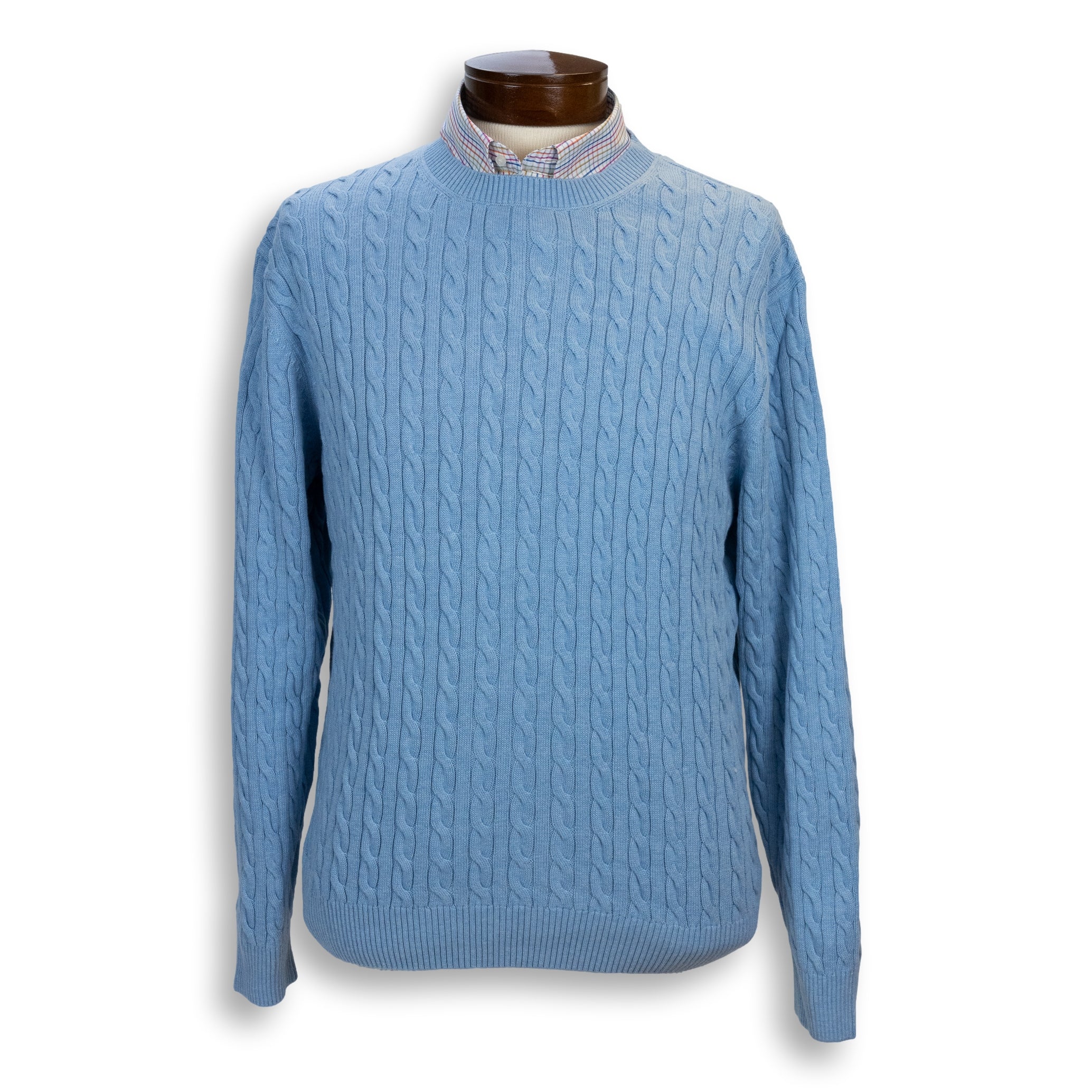 This cable crewneck sweater is made from high-quality Pima cotton, a type of cotton known for its durability, softness, and lustrous appearance. The sweater features a classic cable-knit design, which adds texture and visual interest to the garment.