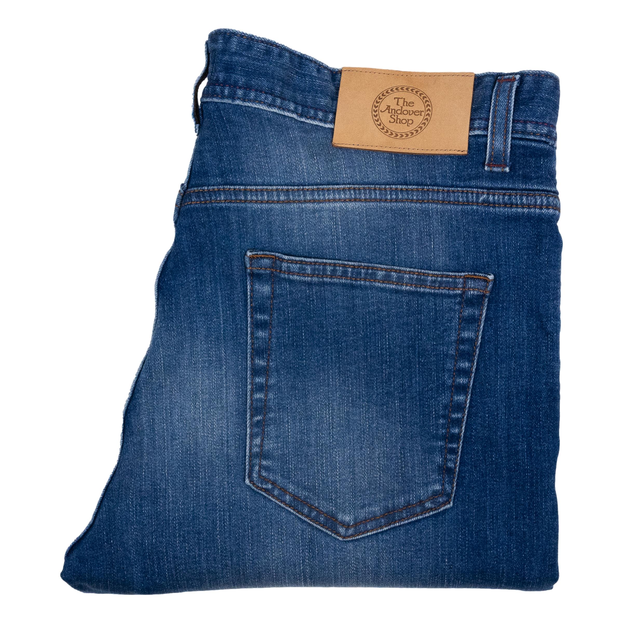 Our 5-Pocket Denim Jean Trouser, meticulously crafted in Italy for The Andover Shop. Fashioned from 100% cotton, this fabric ensures comfort and style, making it the ideal choice for your spring and summer wardrobe but will also carry you through the fall.
