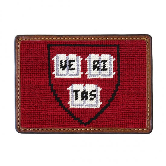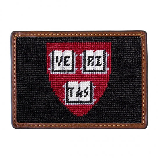 This hand-stitched needlepoint card wallets are finished with English bull hides tanned in Italy. This slimmer wallet style (4” by 3”) provides enough room for cards, cash, and an ID, but does not take up too much room in the pocket or bag. Great for carrying in your front pocket and something less bulky for a night on the town!