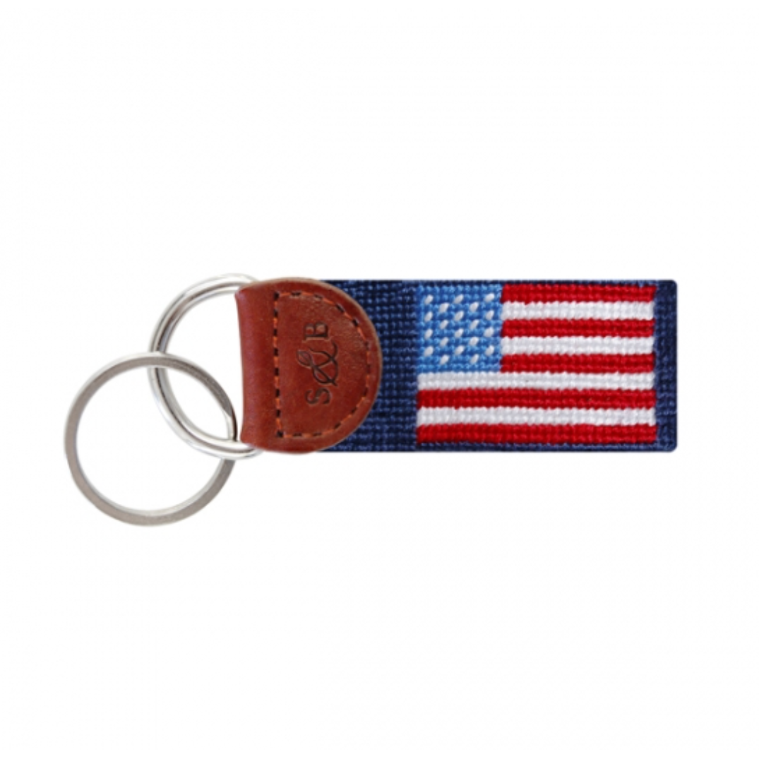 Navy American Flag Needlepoint Key Fob
