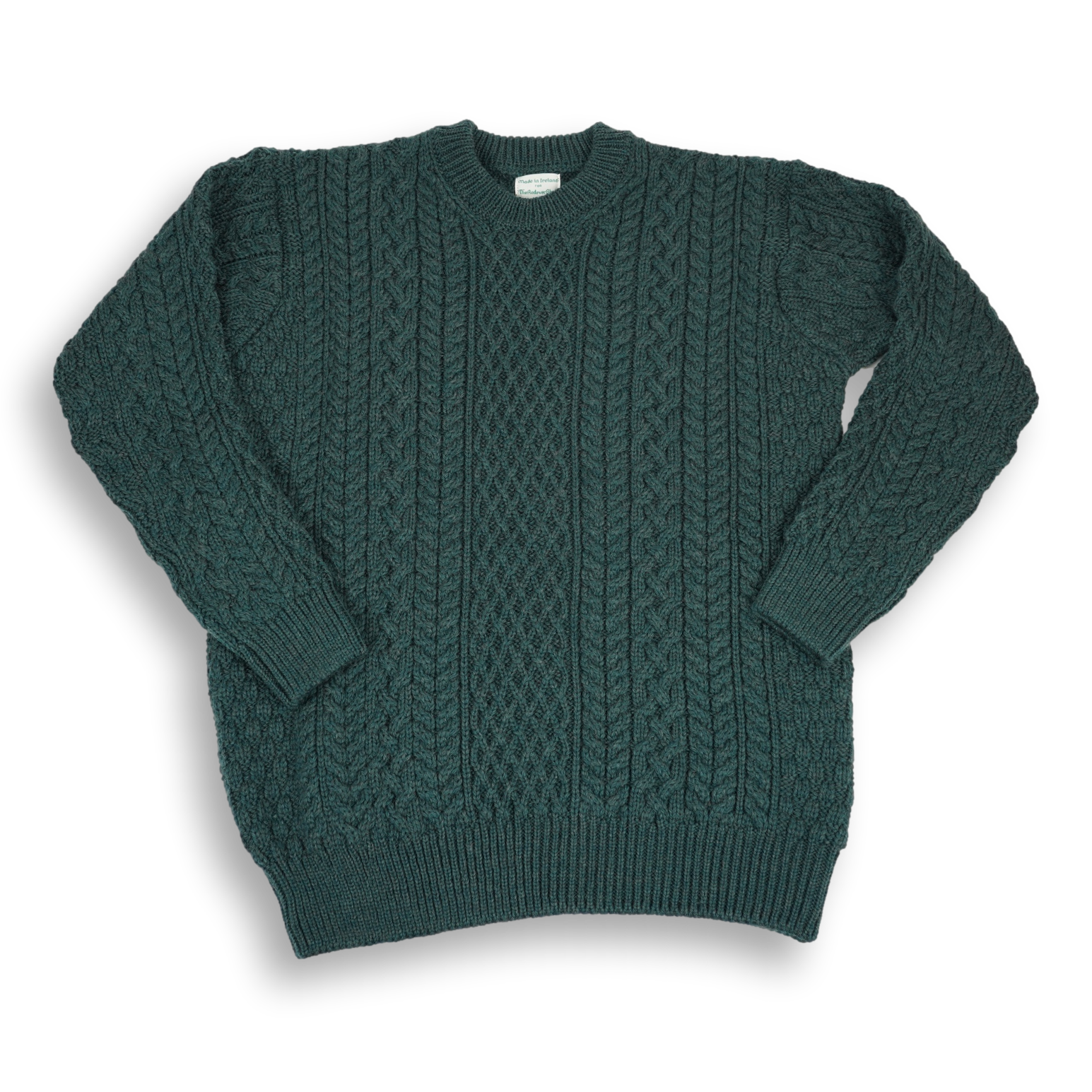 This 100% Merino wool, crew neck sweater is crafted with a rich, traditional Aran stitch pattern, featuring a new take on the classic honeycomb stitch. This sweater is hand knit in Ireland. Knitwear inspired by the windswept landscape of Ireland’s Eye – the tiny island off the Dublin coast that lent its name to the maker of these sweaters.