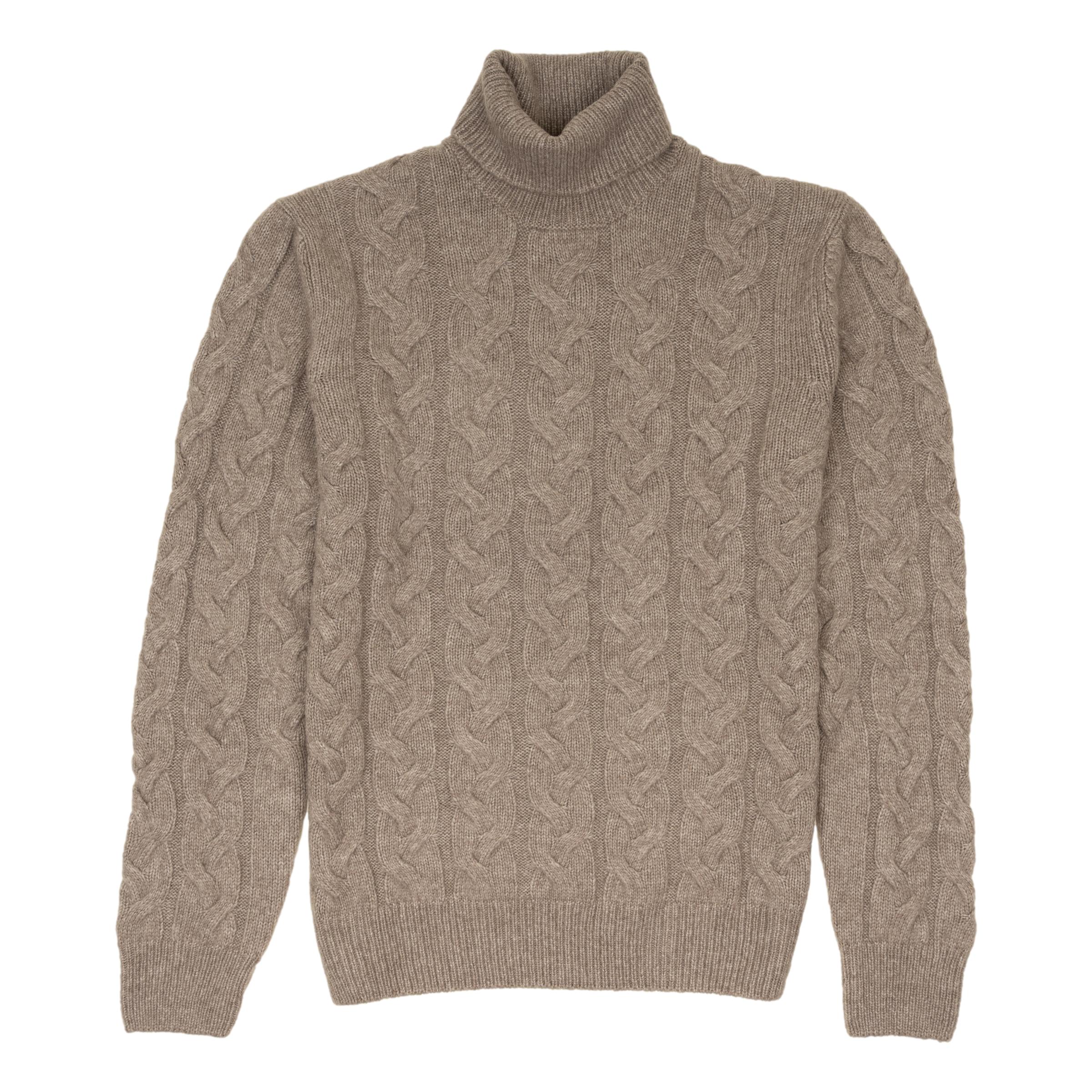 Crafted in Italy from 100% Super Geelong wool, this cable turtleneck sweater offers exceptional softness and warmth. Finished with ribbed cuffs and waist and a ribbed neck for a refined fit, it's a luxurious cold-weather essential with timeless appeal.