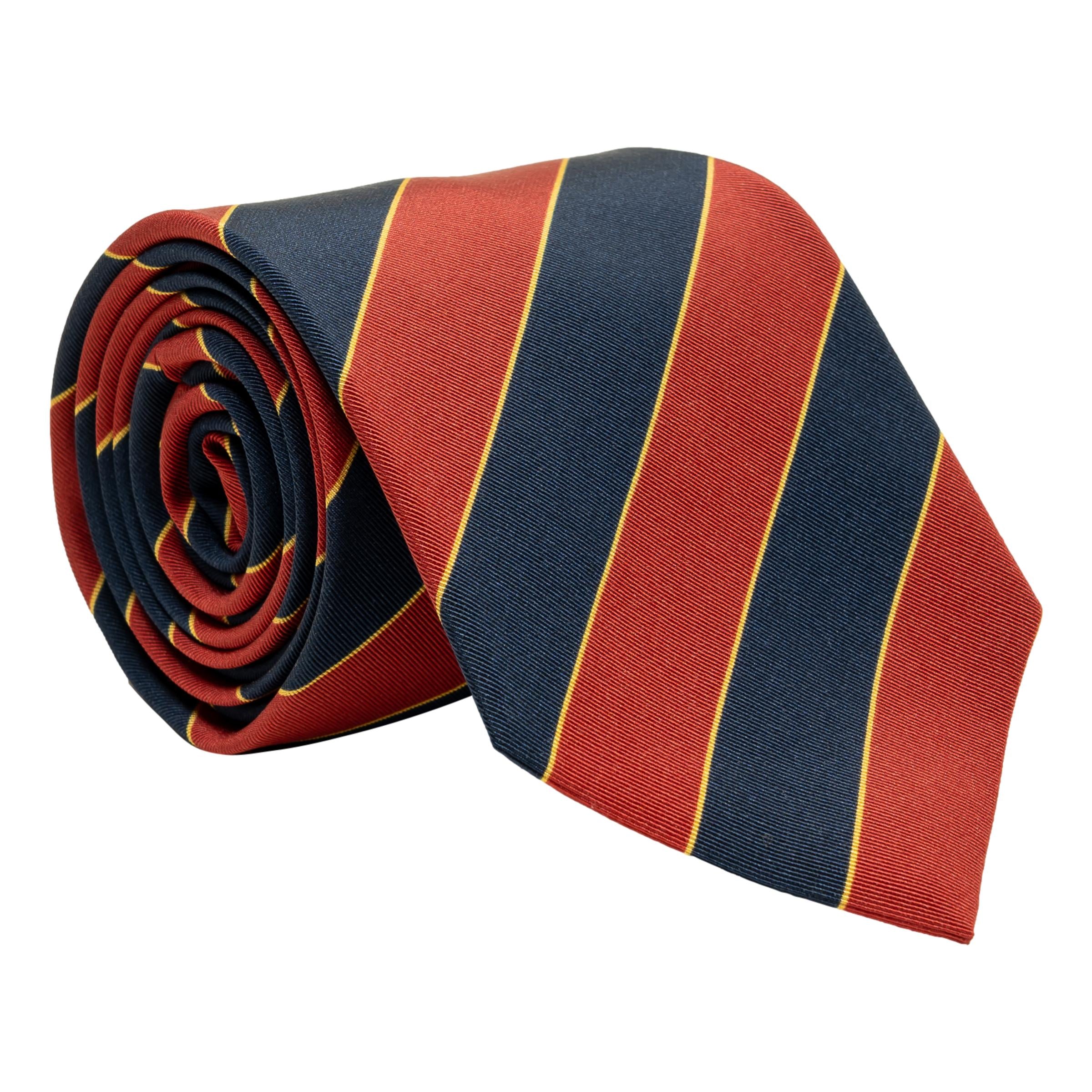 Navy and Red Stripe with Thin Gold Stripe Irish Poplin Tie