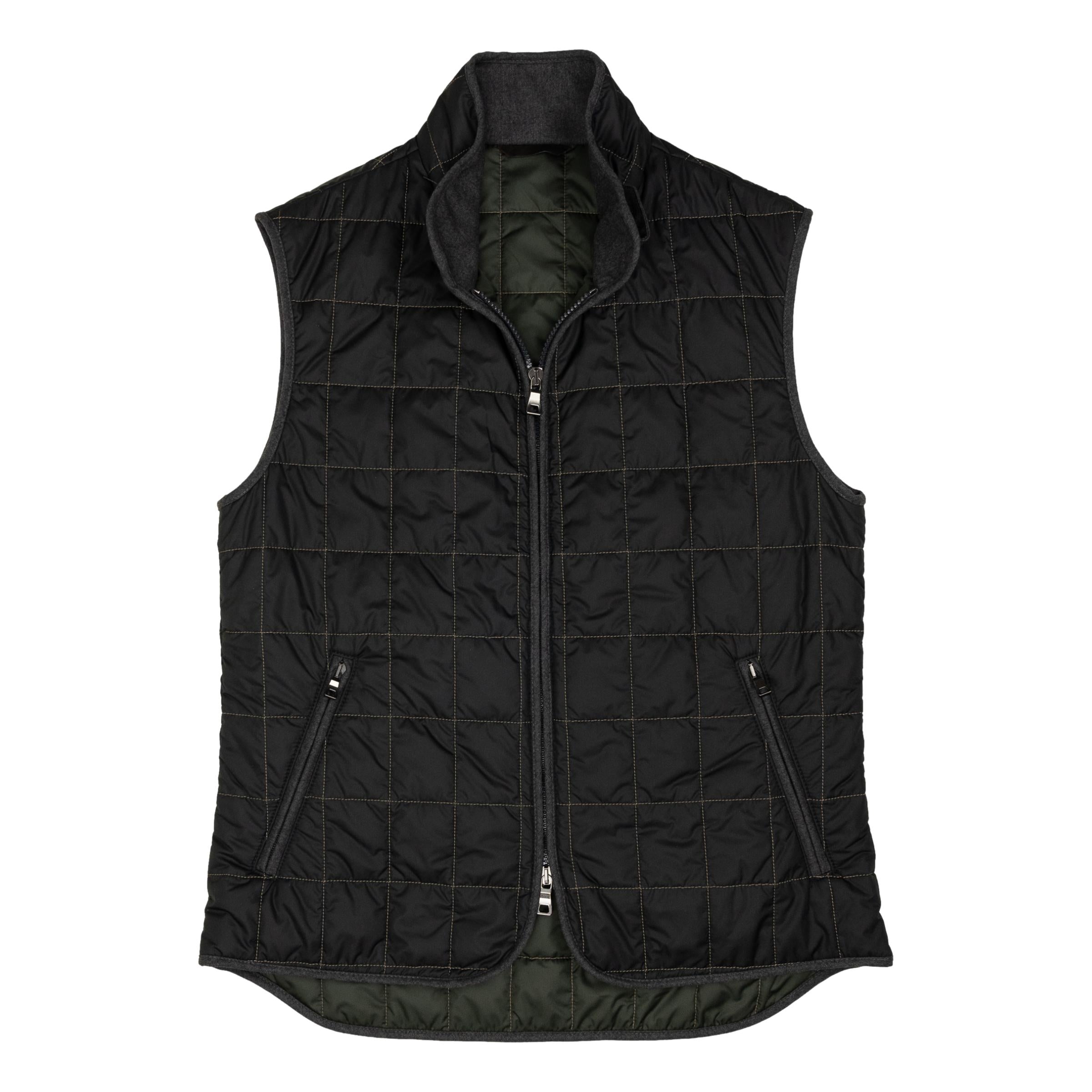 The Waterville Theo quilted vest is made from water resistant nylon and is complete with a 2-way front zipper, zippered hand pockets, and two interior zippered pockets. This lightly quilted vest is designed with versatility in mind and can be worn from early Fall to late Spring. We recommend going one size up from your jacket size. Made in Italy for The Andover Shop using all Italian materials and hardware.