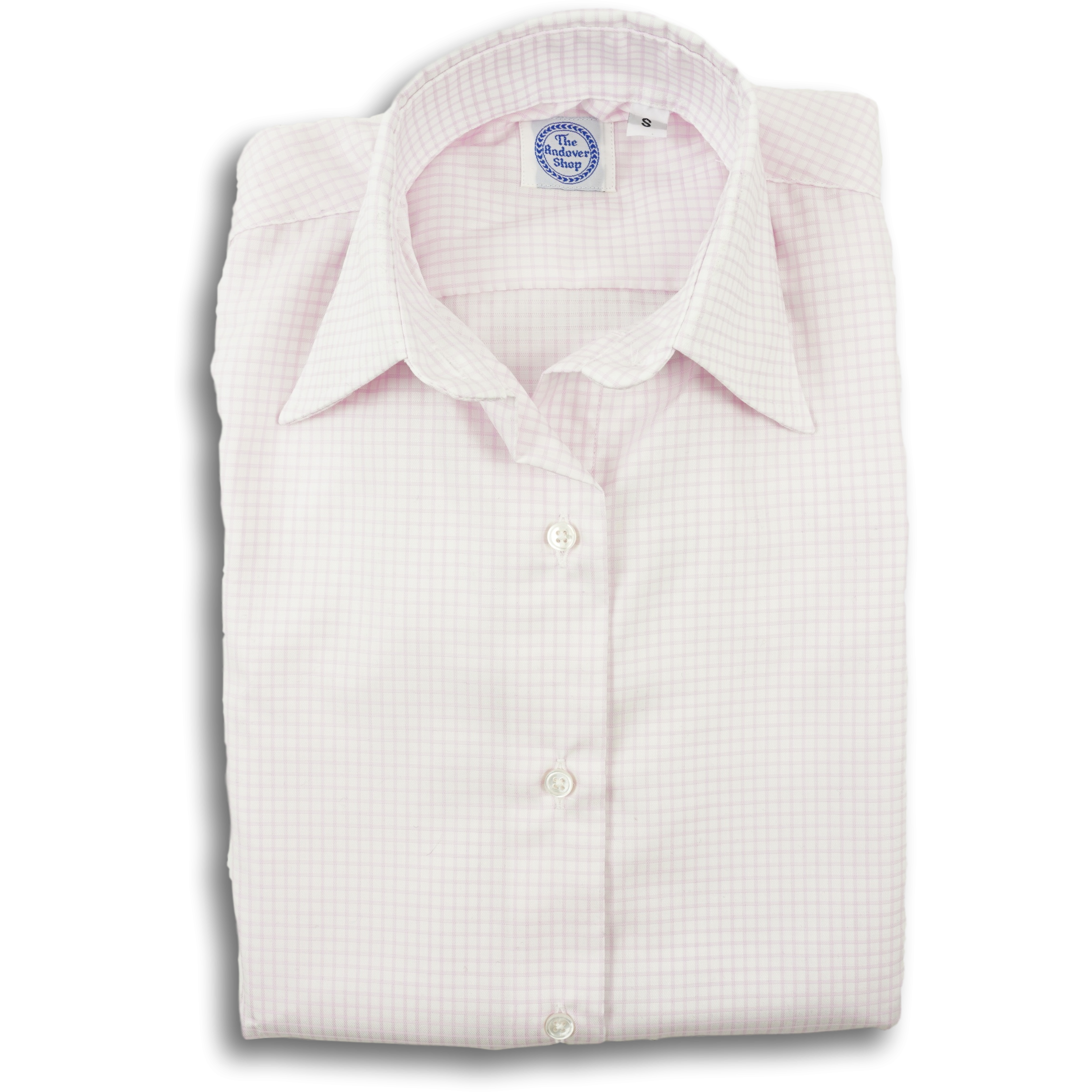 This ladies dress shirt is made in the USA for The Andover Shop using 100% ultra fine cotton. No detail was overlooked with this straight collar, single button cuff with single needle top-stitching dress shirt. Our ladies dress shirts help round out any wardrobe with the high quality garments you have come to expect from The Andover Shop.