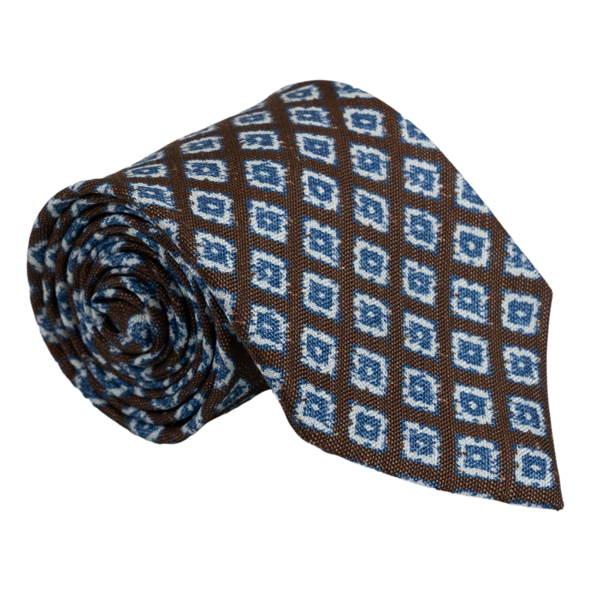 The Abstract Double Diamond Shield Motif Silk Tie is an exquisite accessory meticulously handcrafted in Italy exclusively for The Andover Shop. Made from 100% premium silk, this tie exudes luxury and sophistication. Its design features a unique double diamond shield pattern, adding a touch of elegance and flair to any formal or semi-formal attire. Perfectly crafted with attention to detail, this bow tie is a timeless addition to any gentleman's wardrobe.