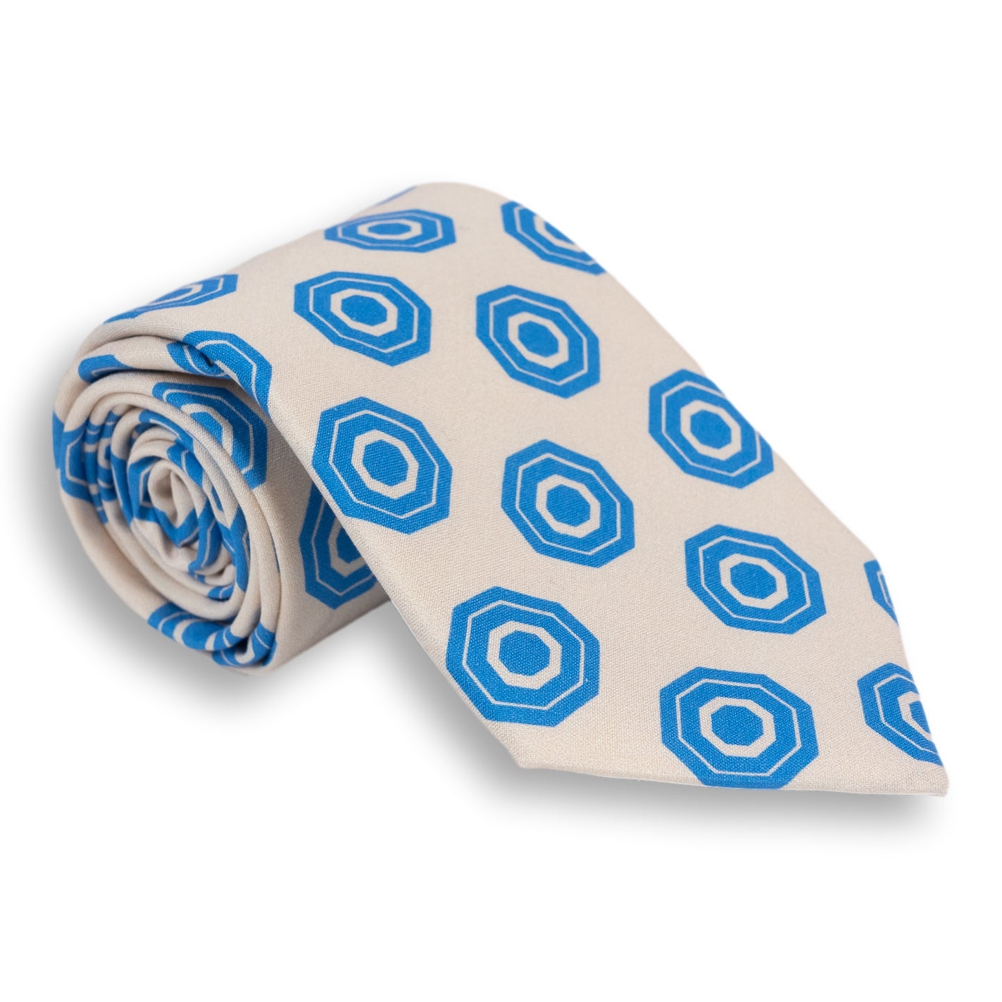 This 100% silk traditional tie is hand-finished and 8 cm in width, 149 cm in length. The color and design makes it versatile and complimentary to many wardrobe options. The perfect addition to every closet and tie collection. Made in England and dry clean only.
