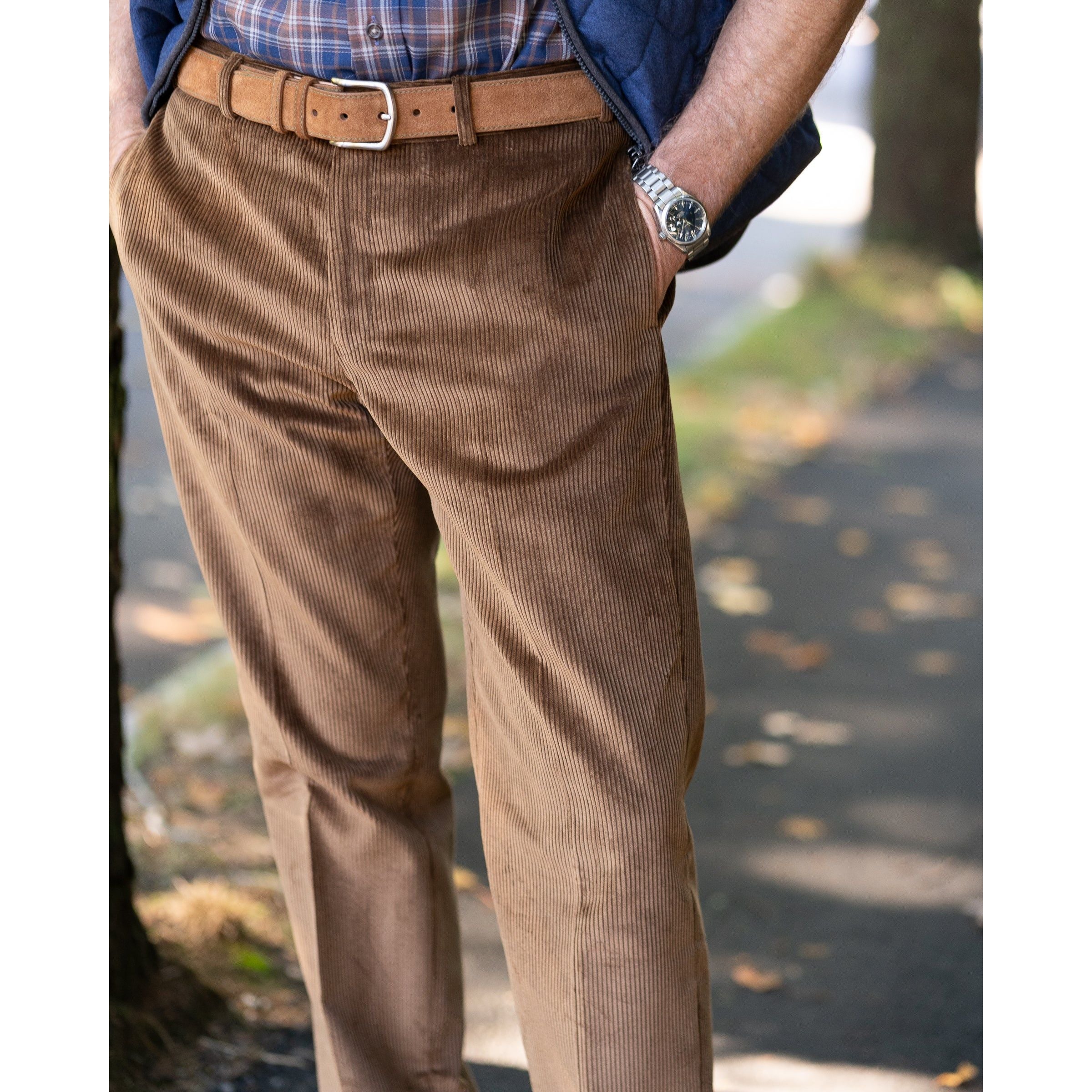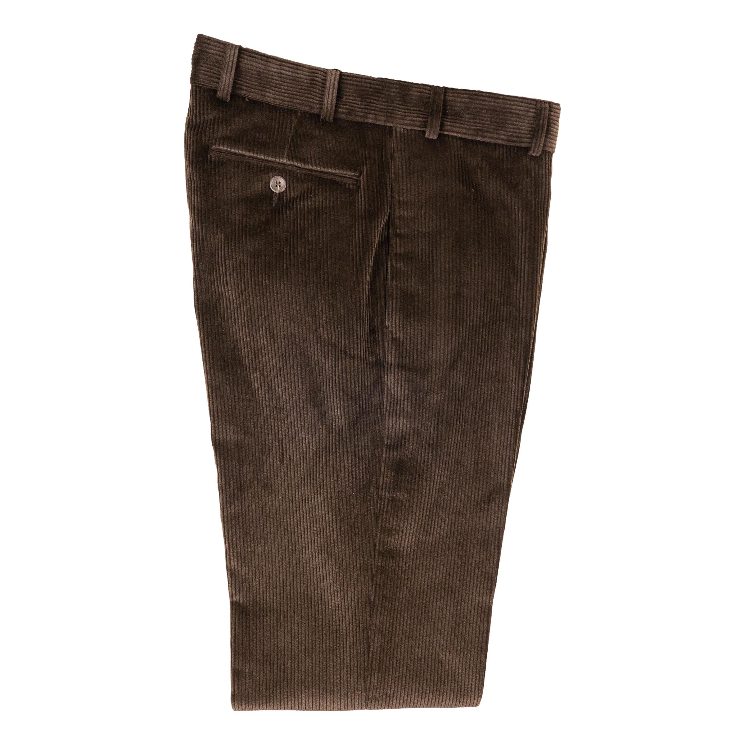 Our Corduroy trousers are the ideal pants for fall and winter. They can be paired with a sweater for a more relaxed look or worn with a button up for a more upscale look. Made from a robust 100% cotton Brisbane Moss corduroy specifically for The Andover Shop. Heavy 8 Wale Cord.